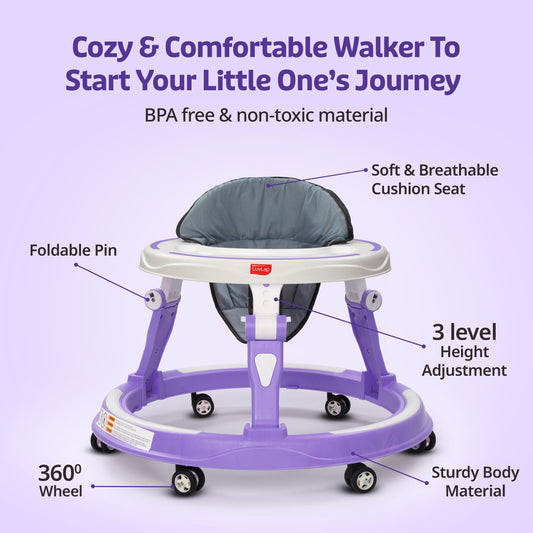 Elegant 360° Baby Walker 9+ Months | 3 Level Height Adjustment Walker/Advanced Baby Activity Walker, Purple