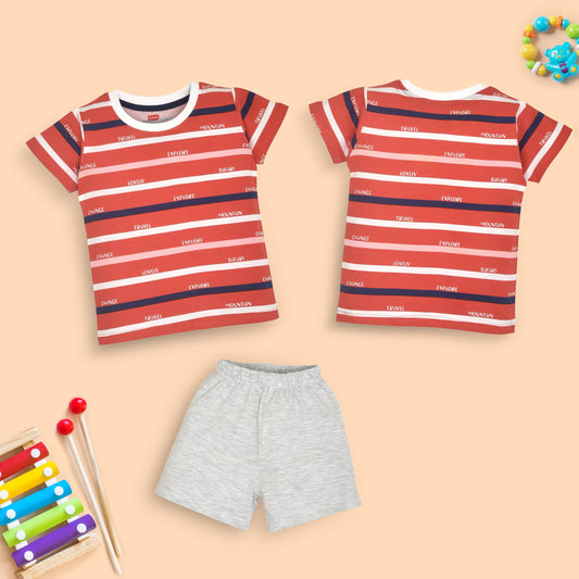 Baby Boys Pack Of 3 Half Sleeve T-Shirt & Shorts Set 100% Cotton