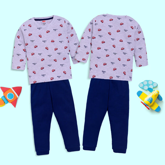 Baby Boys Pack Of 3 Full Sleeve T-Shirt & Pyjama Set 100% Cotton