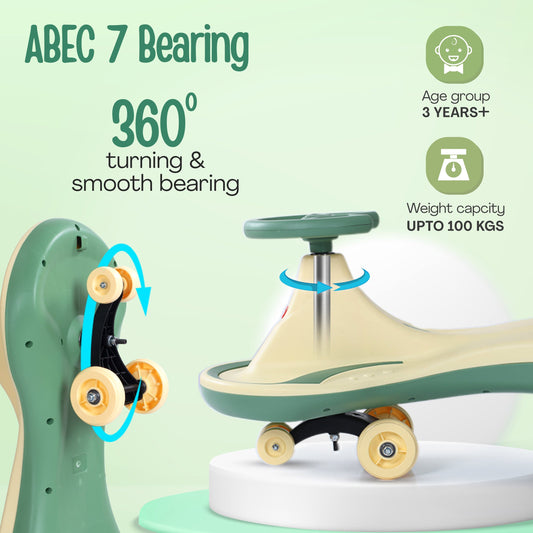Sunny Swing Car, Kids Push Car, Magic Car for Kids, Comfortable Seats & Durable, Ride On Magic Car for 3+ Years Baby Boy & Girl, Beige & Green