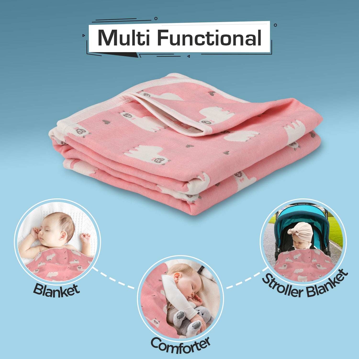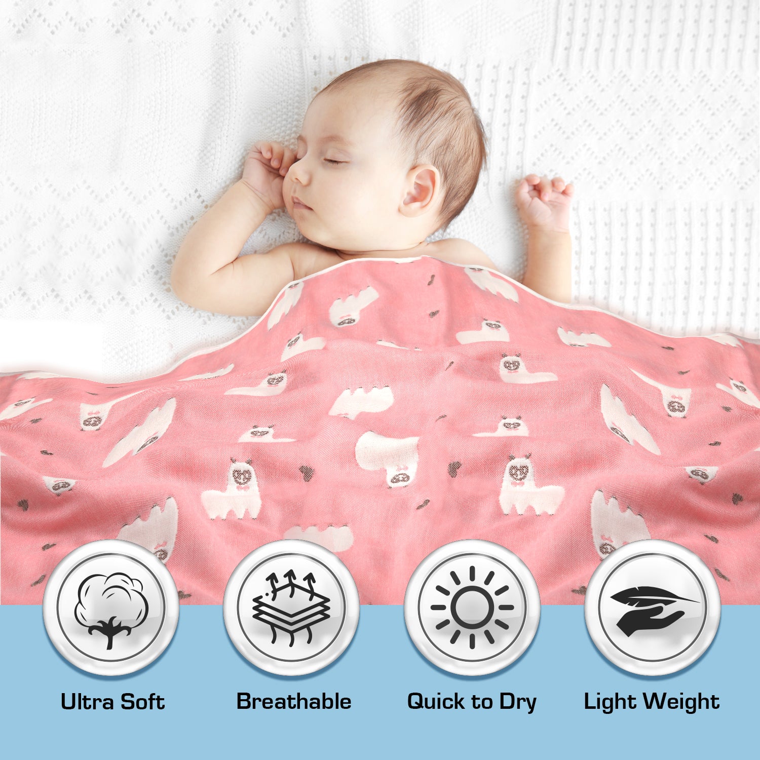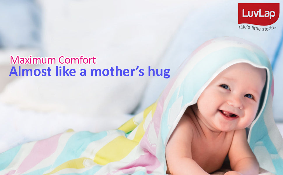 - MULTIPURPOSE - Can be used as Baby Burp cloth, Baby blanket, Nursing cover during travel, comforter, Stroller blanket, Quilt and Swaddle wrapper. Best Suited for Air-conditioned Rooms, Mountain Climate, Moderate Temperature Zones, etc. Easy to Store & Carry.