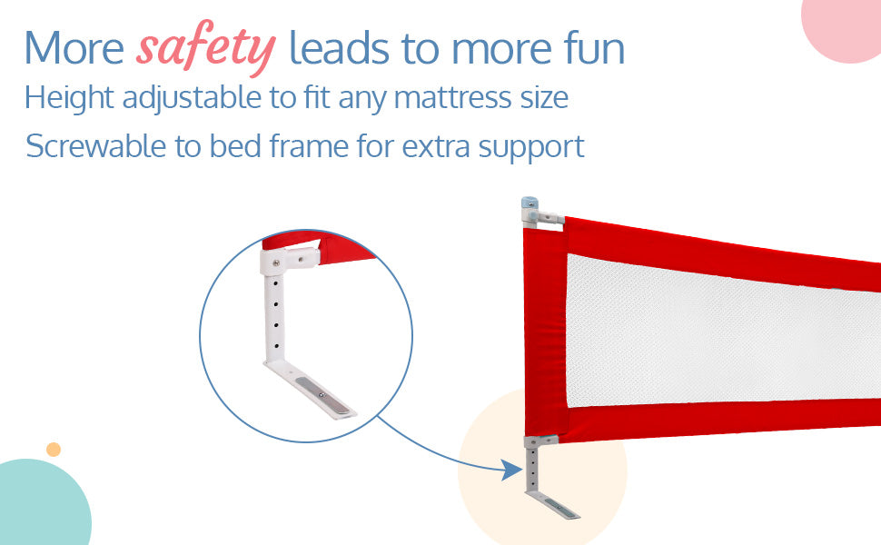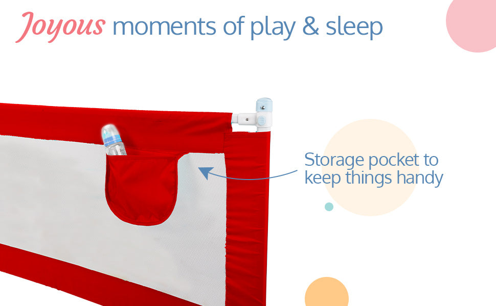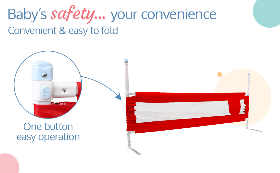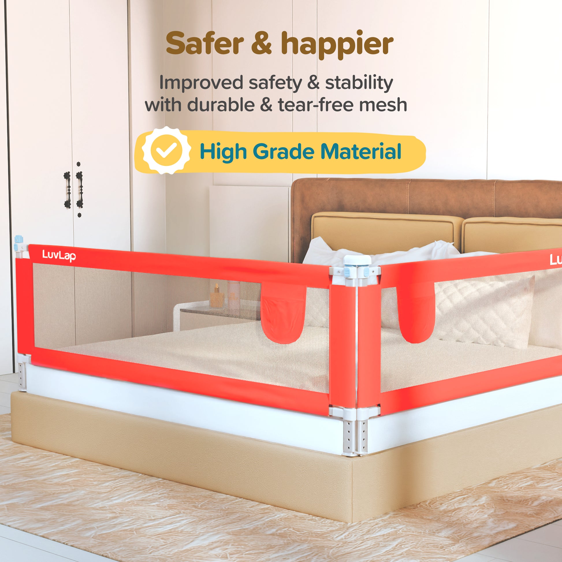 Bed Rail Guard for Baby/Kids Safety, 180cm x 72 cm, Portable & Foldable, Baby Safety Essential, Adjustable Height, fits All Bed Sizes (Red - Without Print)