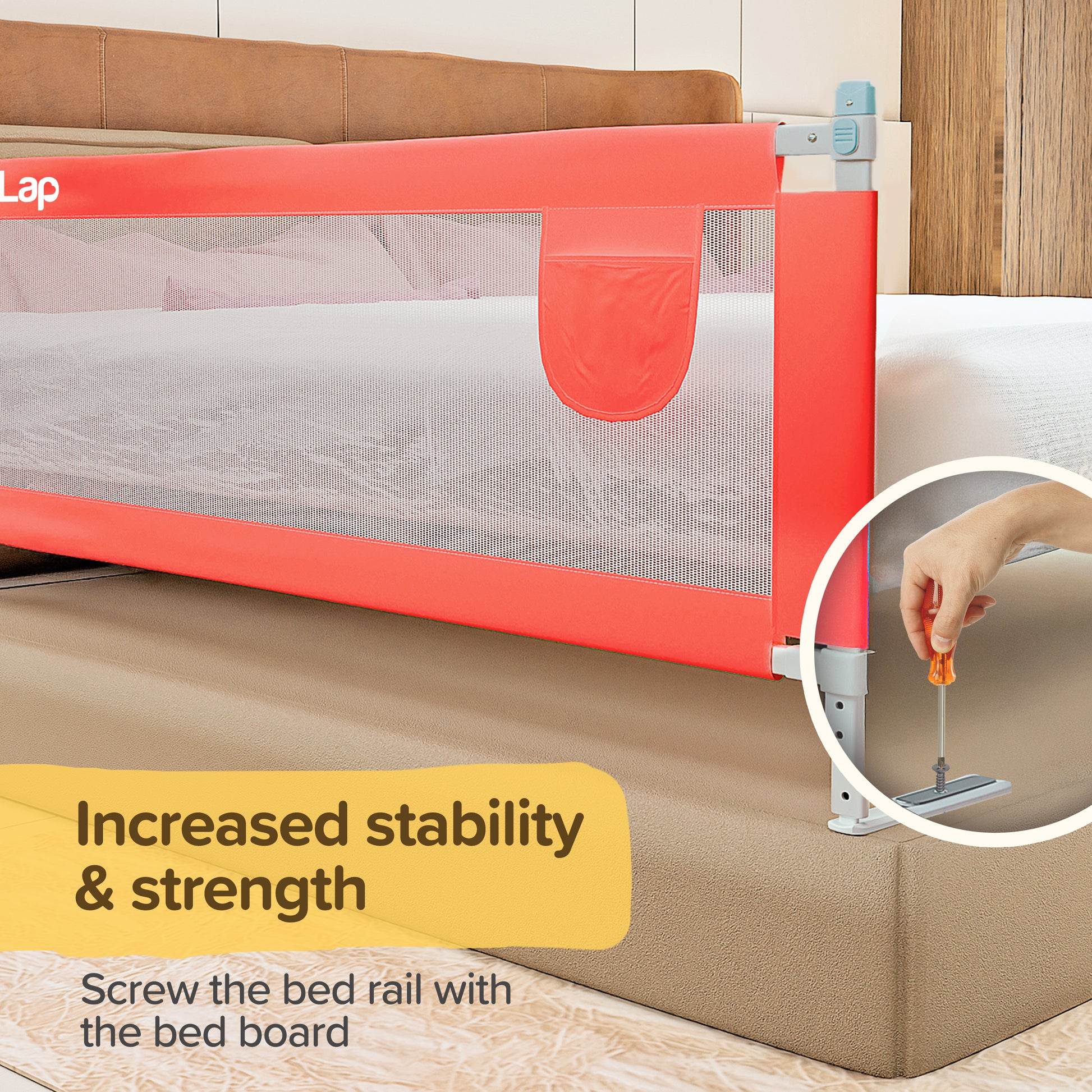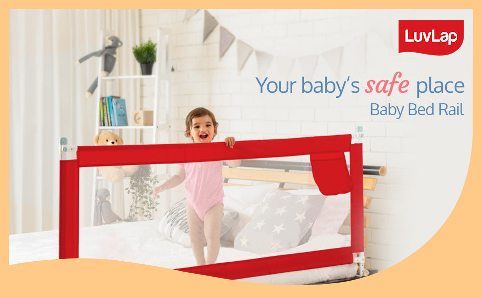 - Bed rail protector assures safety of the baby from falling from the side of the bed. It is easy to install. The L shaped section needs to be affixed with the base of the bed (on which the mattress rests) with screws.