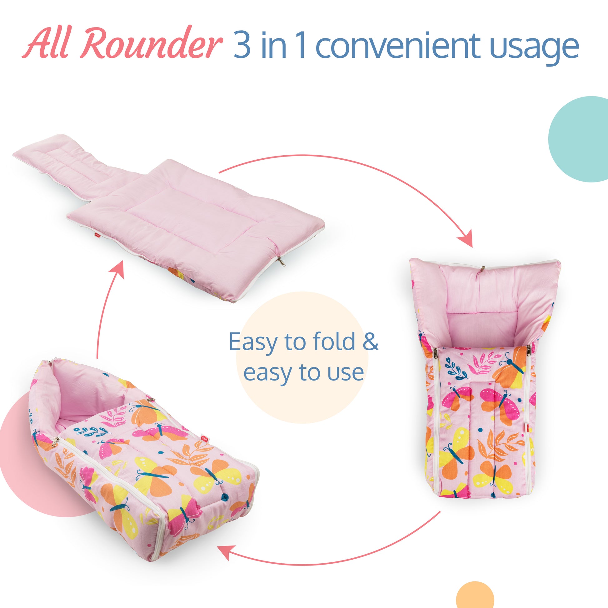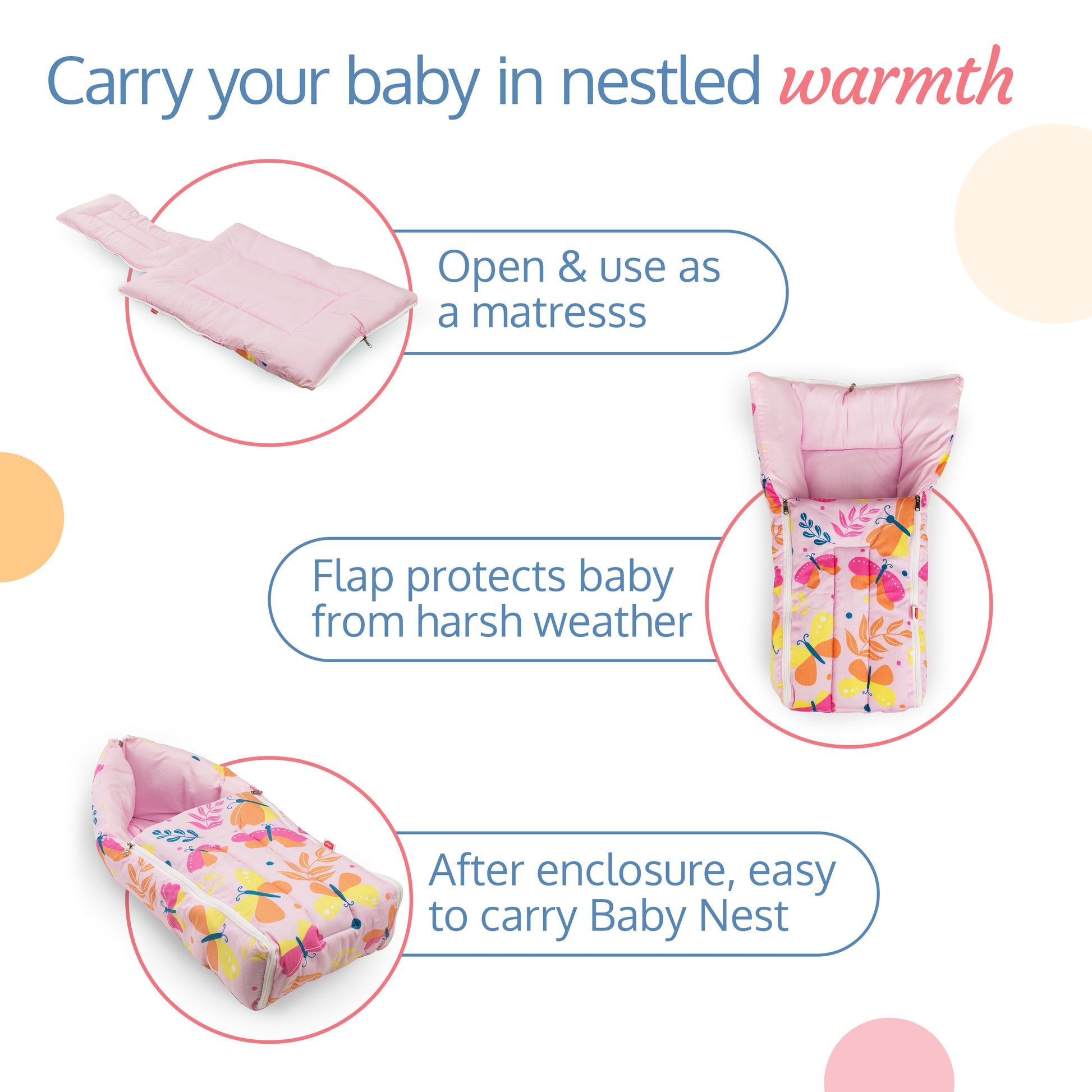 3 in 1 Baby Bed, Sleeping Bag & Carry Nest - Pink Pilot Print