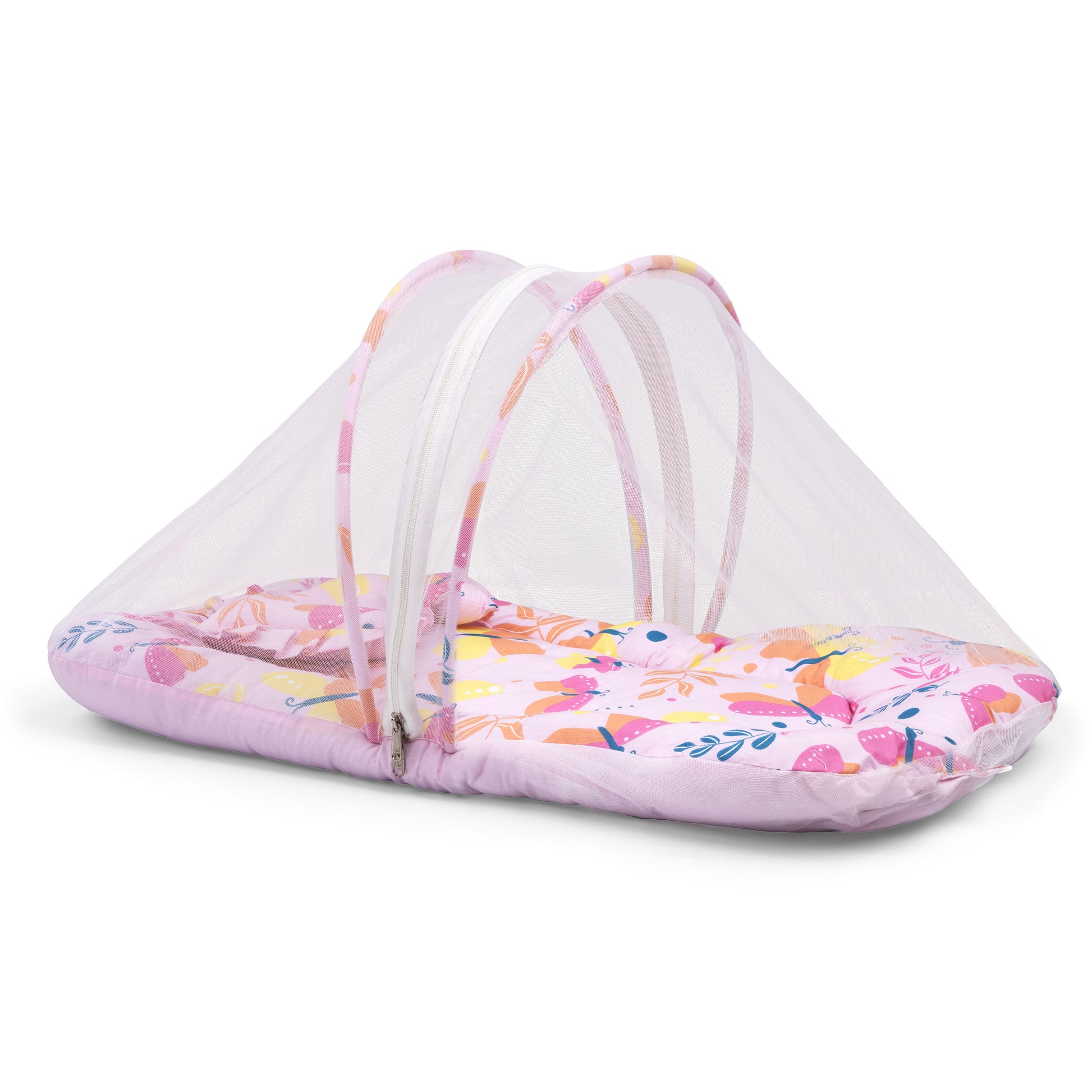 LuvLap premium baby mattress with attached mosquito net is perfectly designed for your baby's cosy sleep. This bedding set is made of high quality fabric & prevents bugs to harm your baby. The design is fashionable & trendy, your baby will love it. High on durability, this lightweight bedding set is easily portable & thus can become a travel companion.