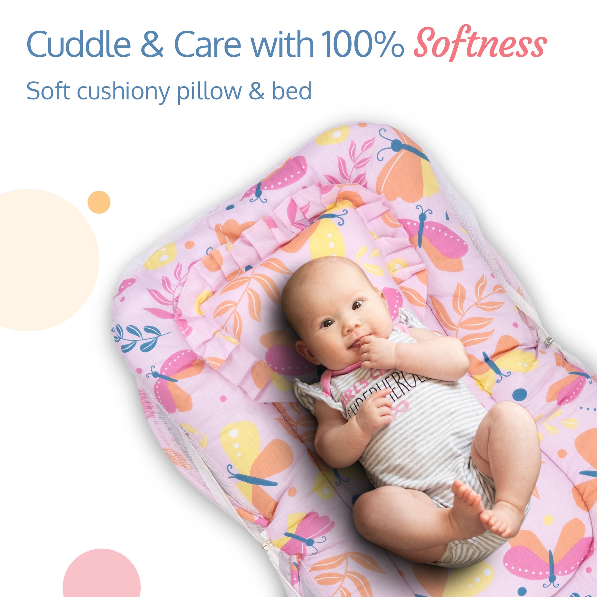 LuvLap Net Pillow Mattress Pink Butterfly Print