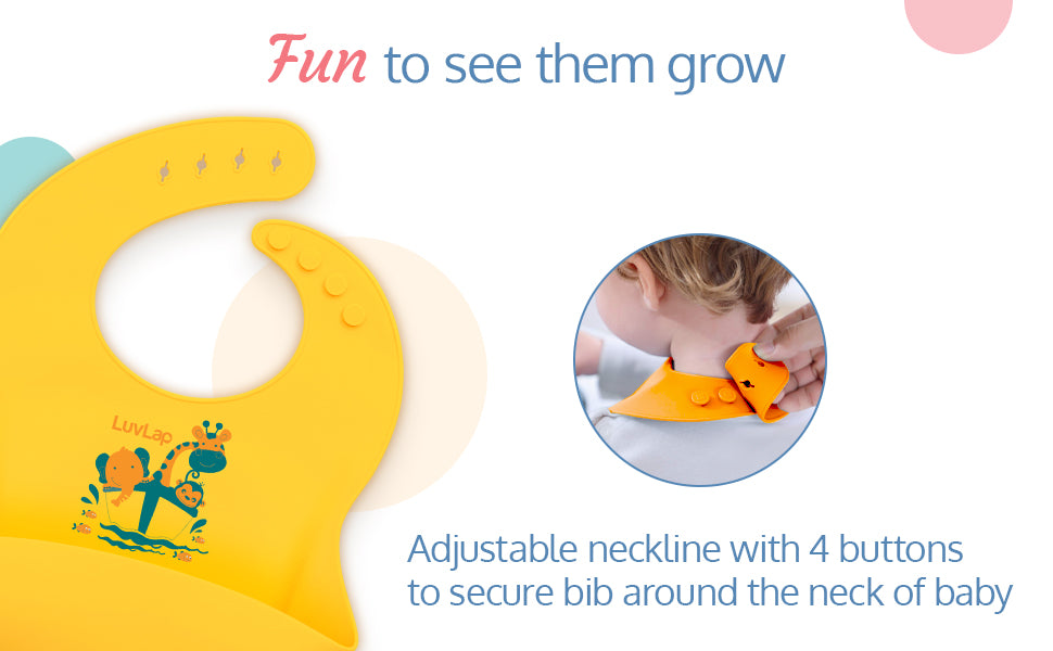 - Comes with 4 buttons to secure bib around the neck of the baby, toddlers can't to pull it apart