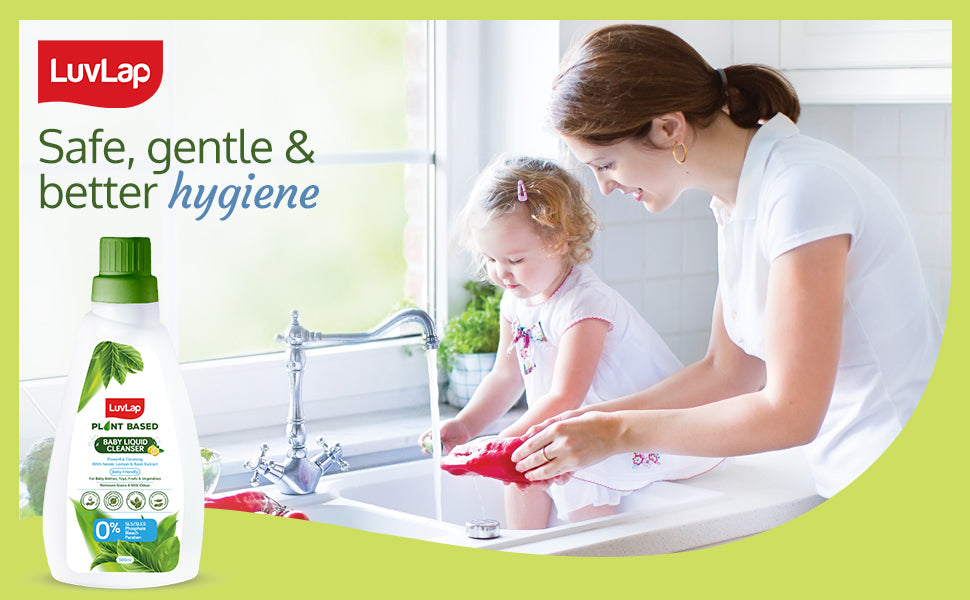 Hello Mommies experience pure, plant powered cleanliness with LuvLap Plant Based Baby Liquid Cleanser Enriched with Neem & Lemon Extract and Basil. It effortlessly banishes bacteria, eliminates stains and odour from baby essentials. Better hygiene makes your baby happy, and you happier