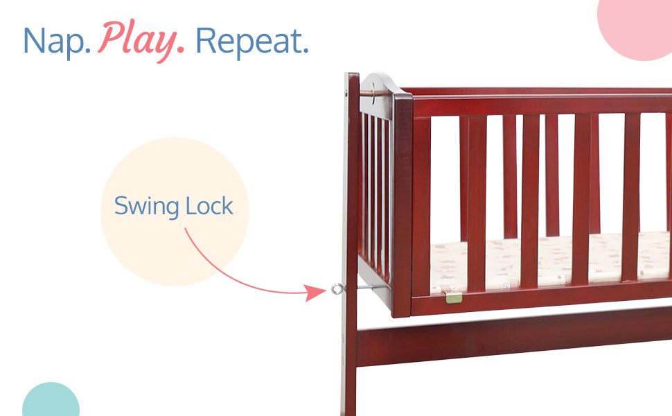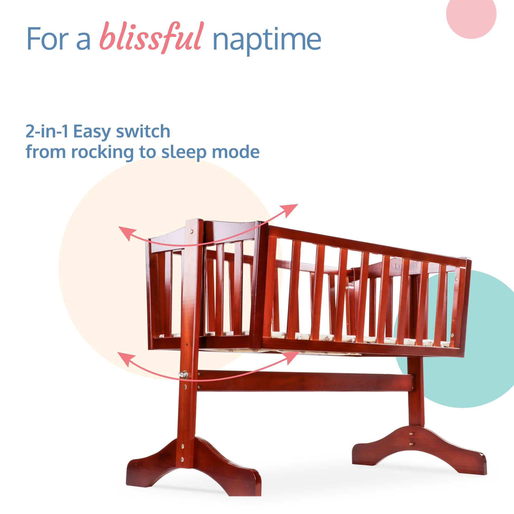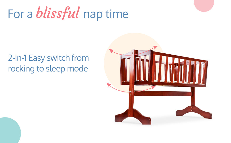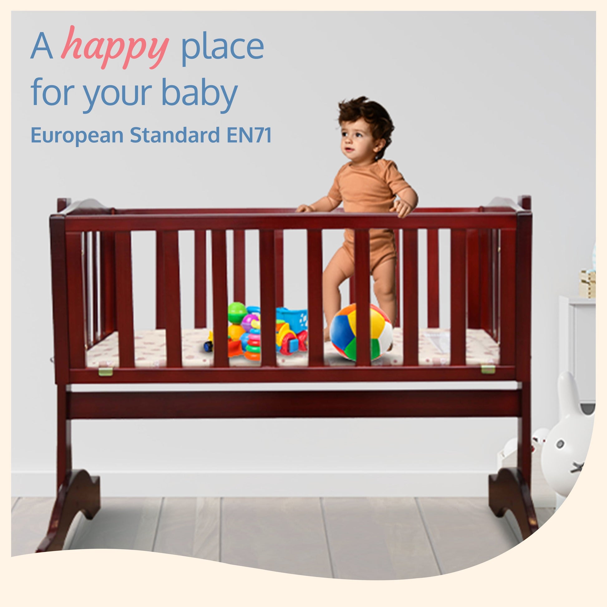 LuvLap Baby wooden cot with cradle is designed for little babies to protect them from fall down. Baby Cot with Cradle helps you to make your baby naptime as restful as possible. It is Certified as per European Standards, and that the Cot can be easily converted into cradle. It comes with Mosqito net, Recommended age - 0 - 12 Months & weght up to 15 Kgs