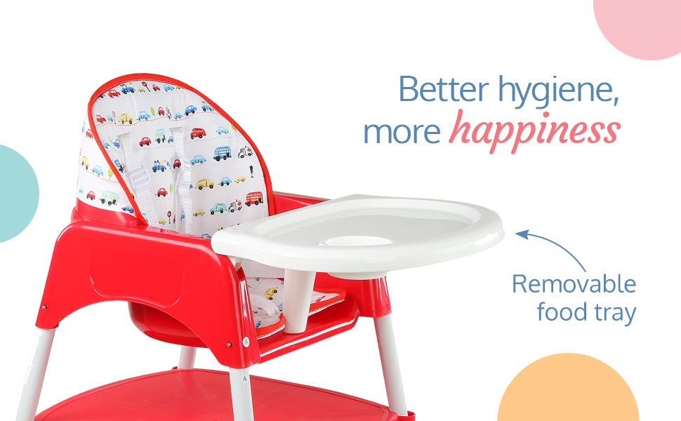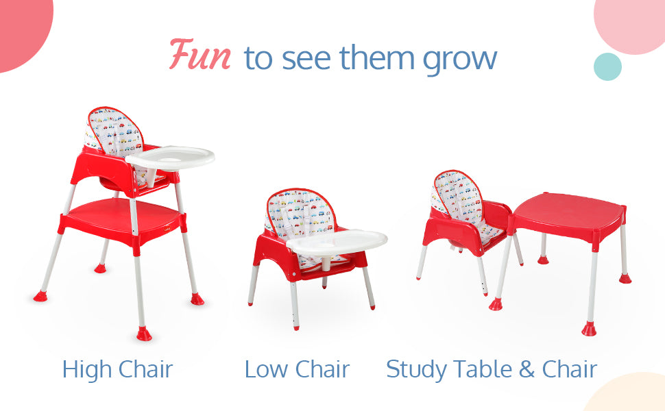 - 3 In 1 Design: Highchair converts To Low Chair With Tray, Baby Table & Chair