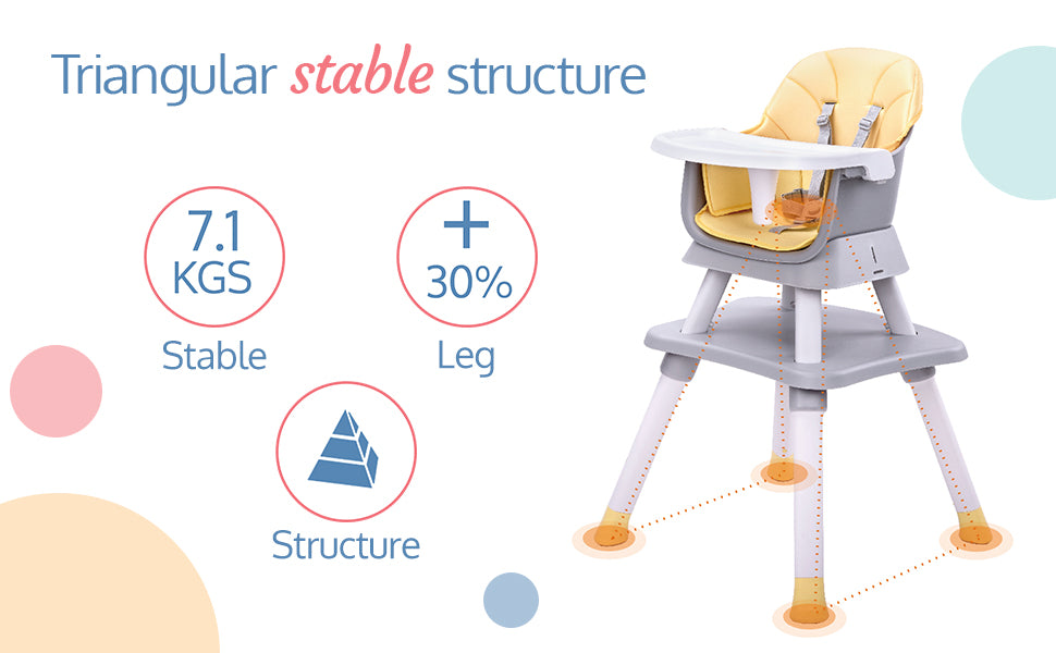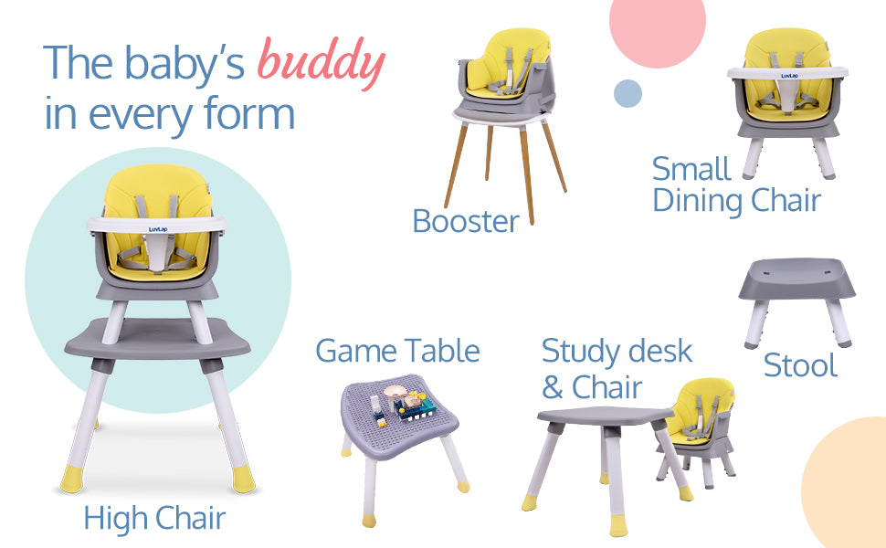 - The Highchair has multiple function to meet baby's different needs : used as High Chair, Booster Chair, Small Dining Chair, Study desk and chair, Game Table and Stool