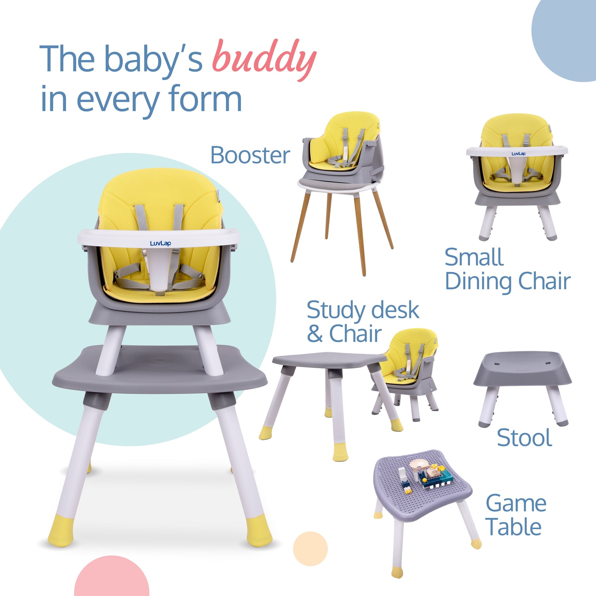 LuvLap Multifunction 6 in 1 Baby high chair can be used as High Chair, Booster Chair, Small Dinig Chair, Study desk and chair, Game Table and Stool, Suitable for 6 to 36 months