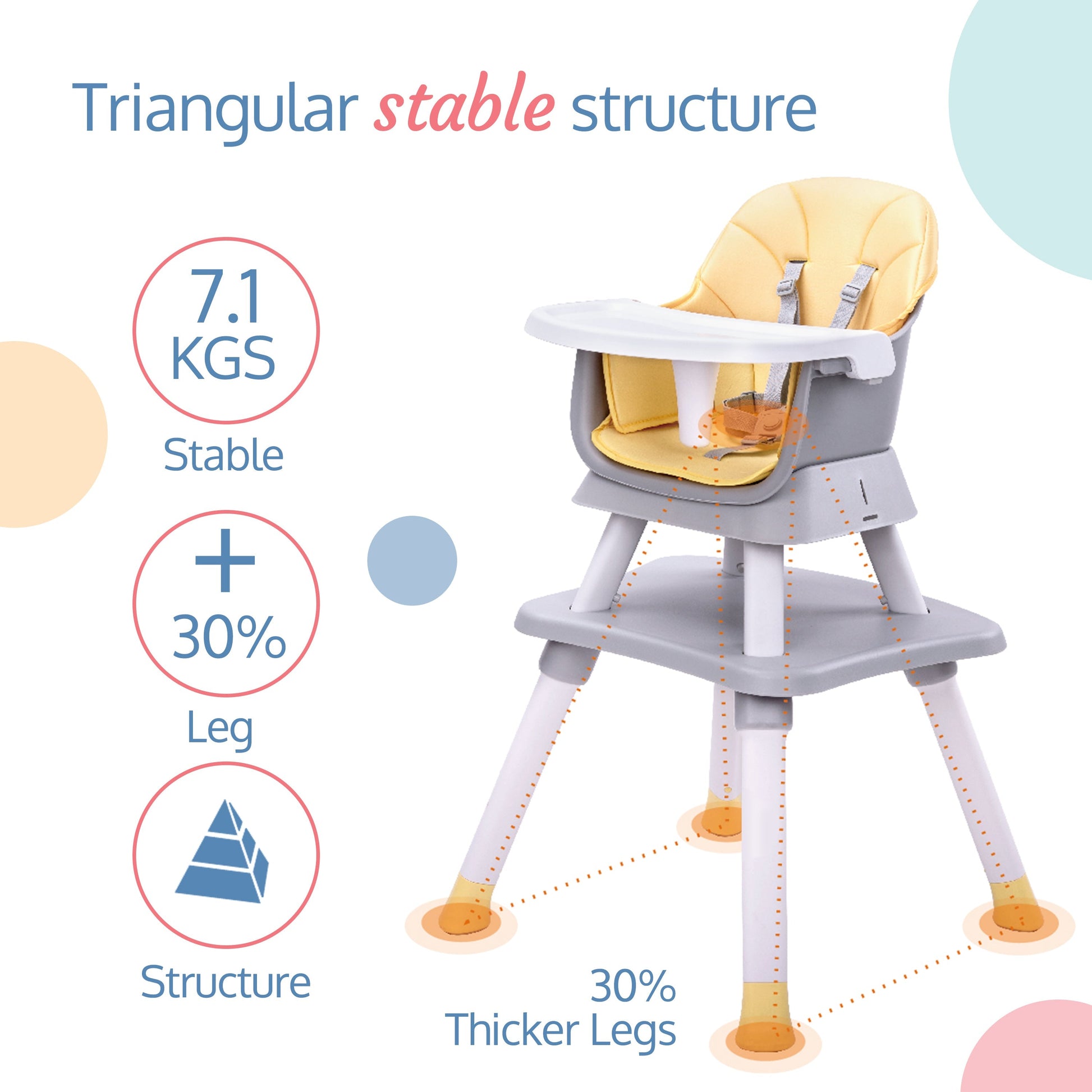 Multifunction 6 in 1 Baby high Chair ,Suitable for 6 to 36 Months (Grey and Yellow)