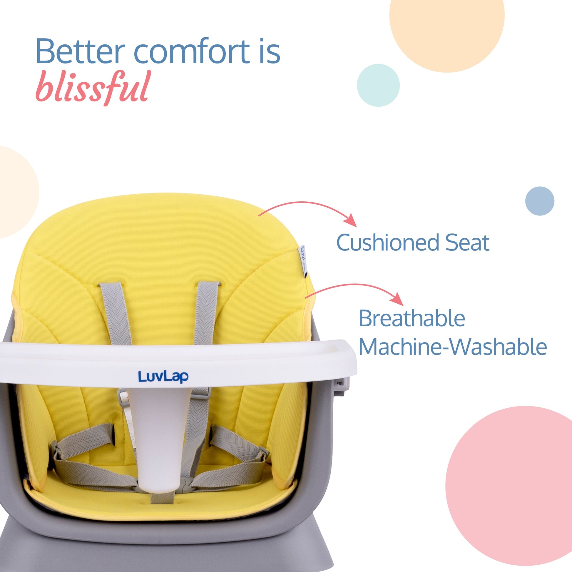 - Machine washable material for the cushion ensures maximum comfort for the baby