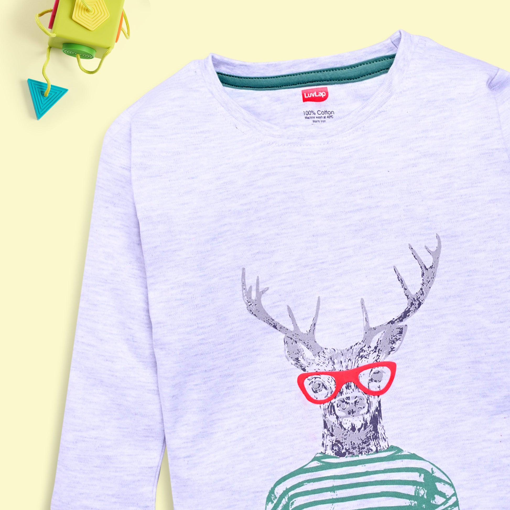 Baby Boys 100% Cotton Full Sleeve Boys T-Shirt & Pyjama Sets Pack Of 3, Grey Melange, Baby Pink & Supra