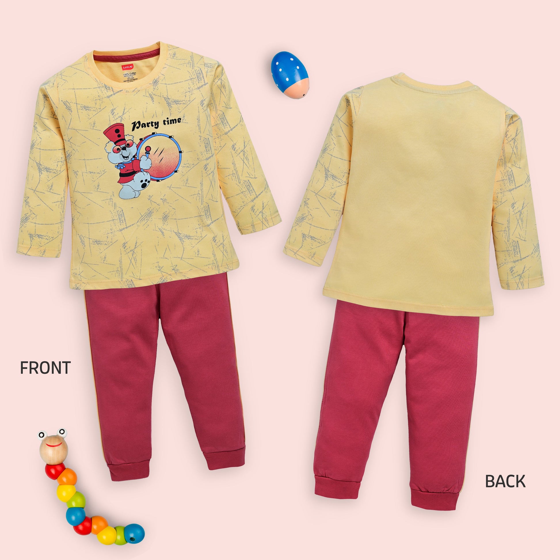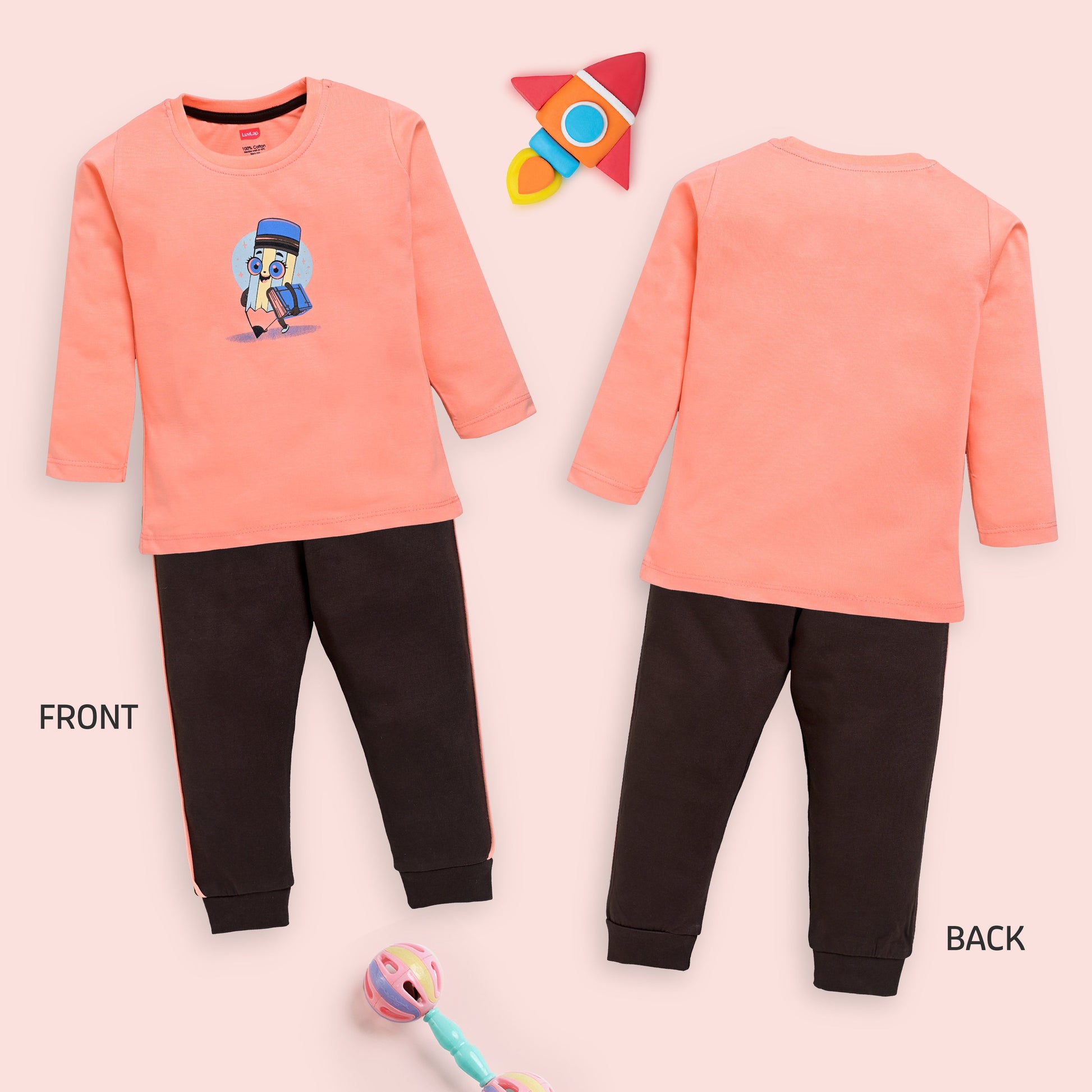 Baby Boys 100% Cotton Full Sleeve Boys T-Shirt & Pyjama Sets Pack Of 3, Mango, Sweet Peach & White