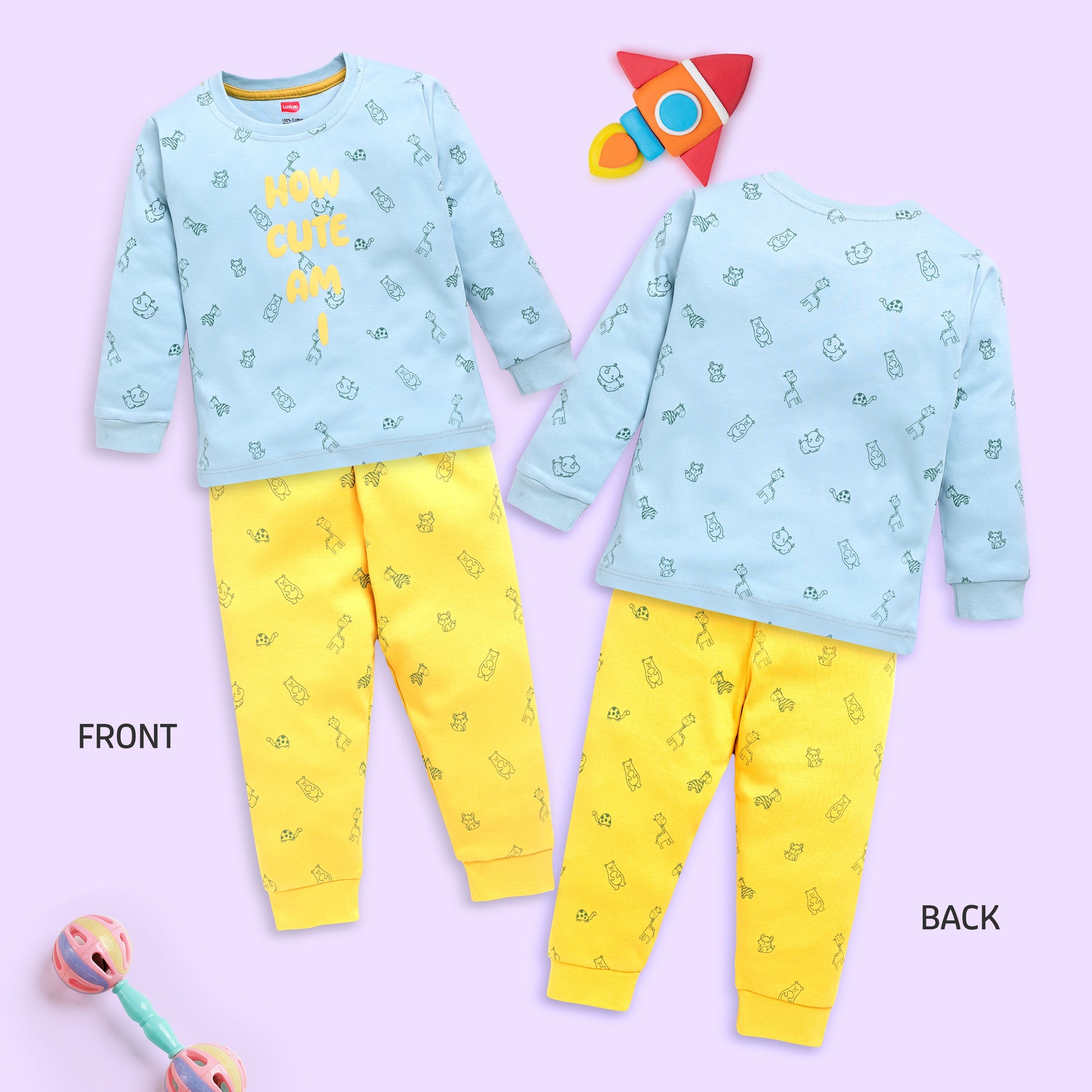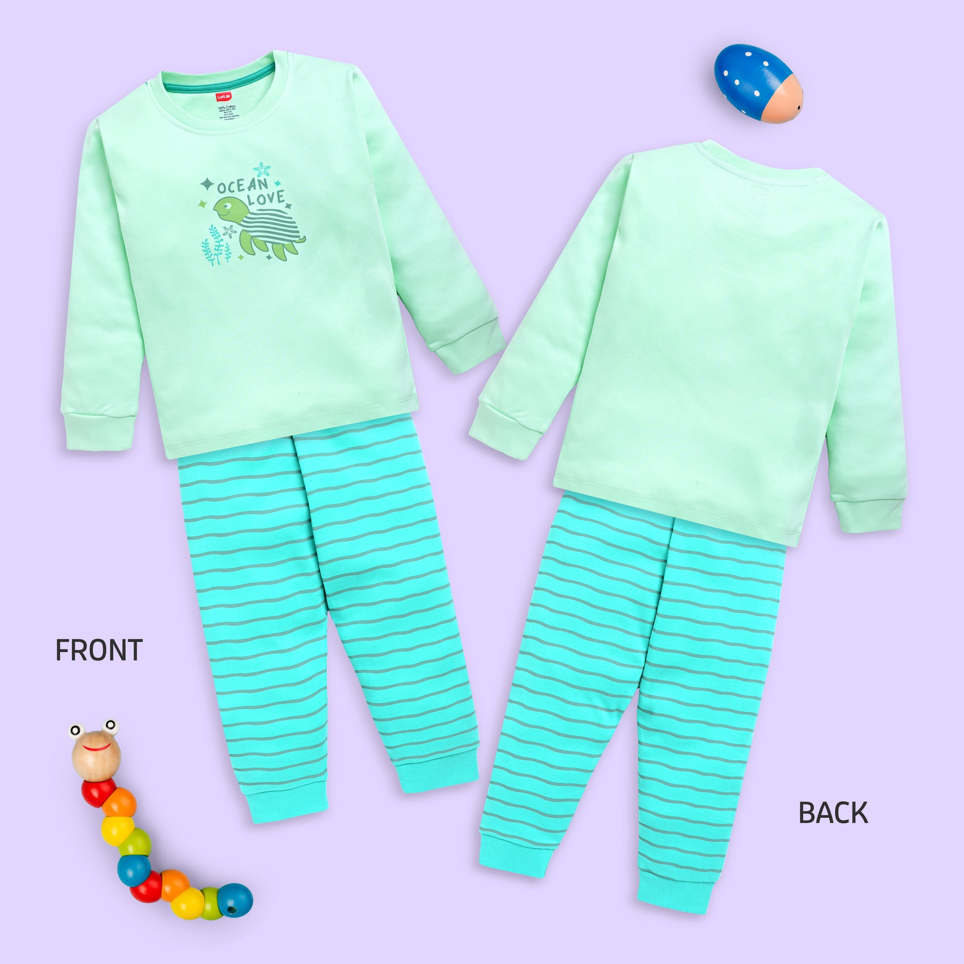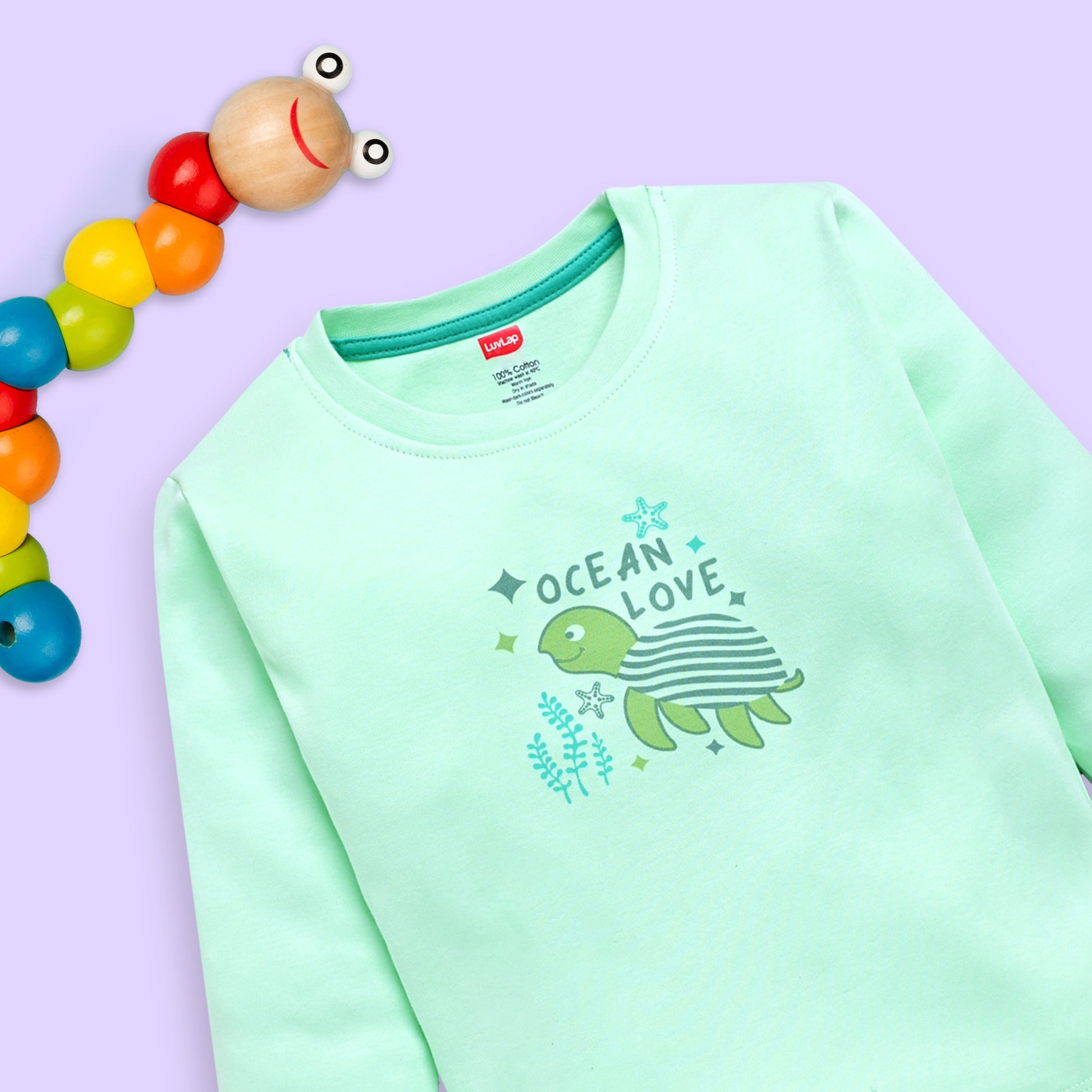 Baby Boys 100% Cotton Full Sleeve Boys T-Shirt & Pyjama Sets Pack Of 3, Peach, Misty Blue & Sea Green