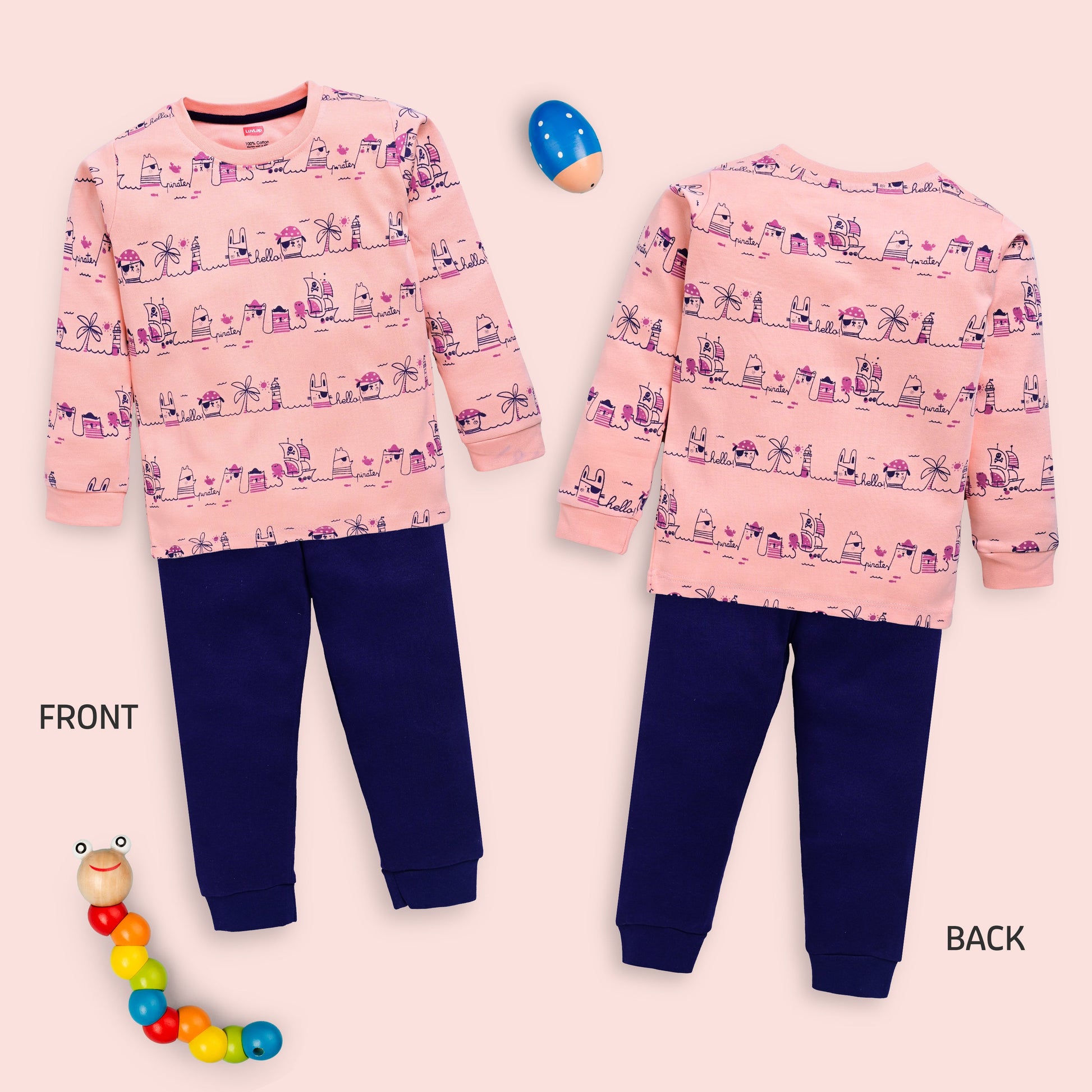 Baby Boys 100% Cotton Full Sleeve  Boys T-Shirt & Pyjama Sets Pack Of 3, Peach, Pink Rose & White