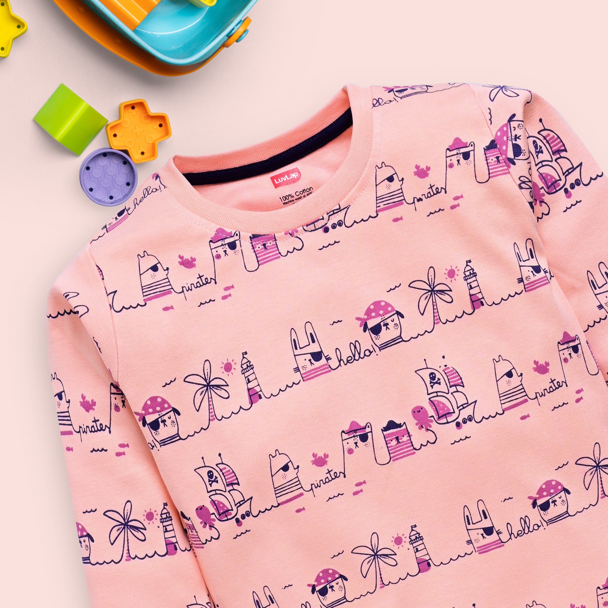 Baby Boys 100% Cotton Full Sleeve Boys T-Shirt & Pyjama Sets Pack Of 3, Peach, Pink Rose & White