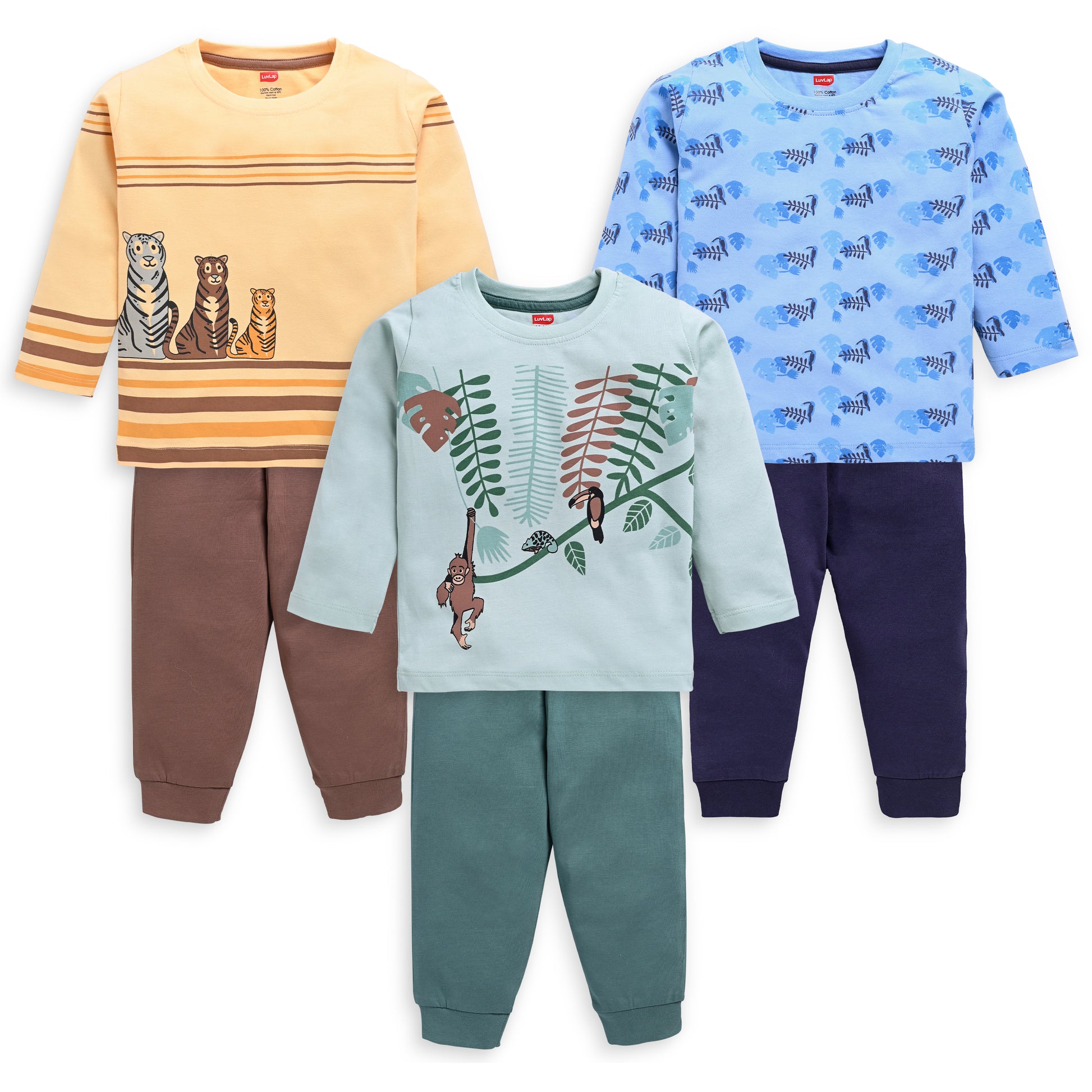 Baby Boys Pack Of 3 Full Sleeve T-Shirt & Pyjama Set 100% Cotton