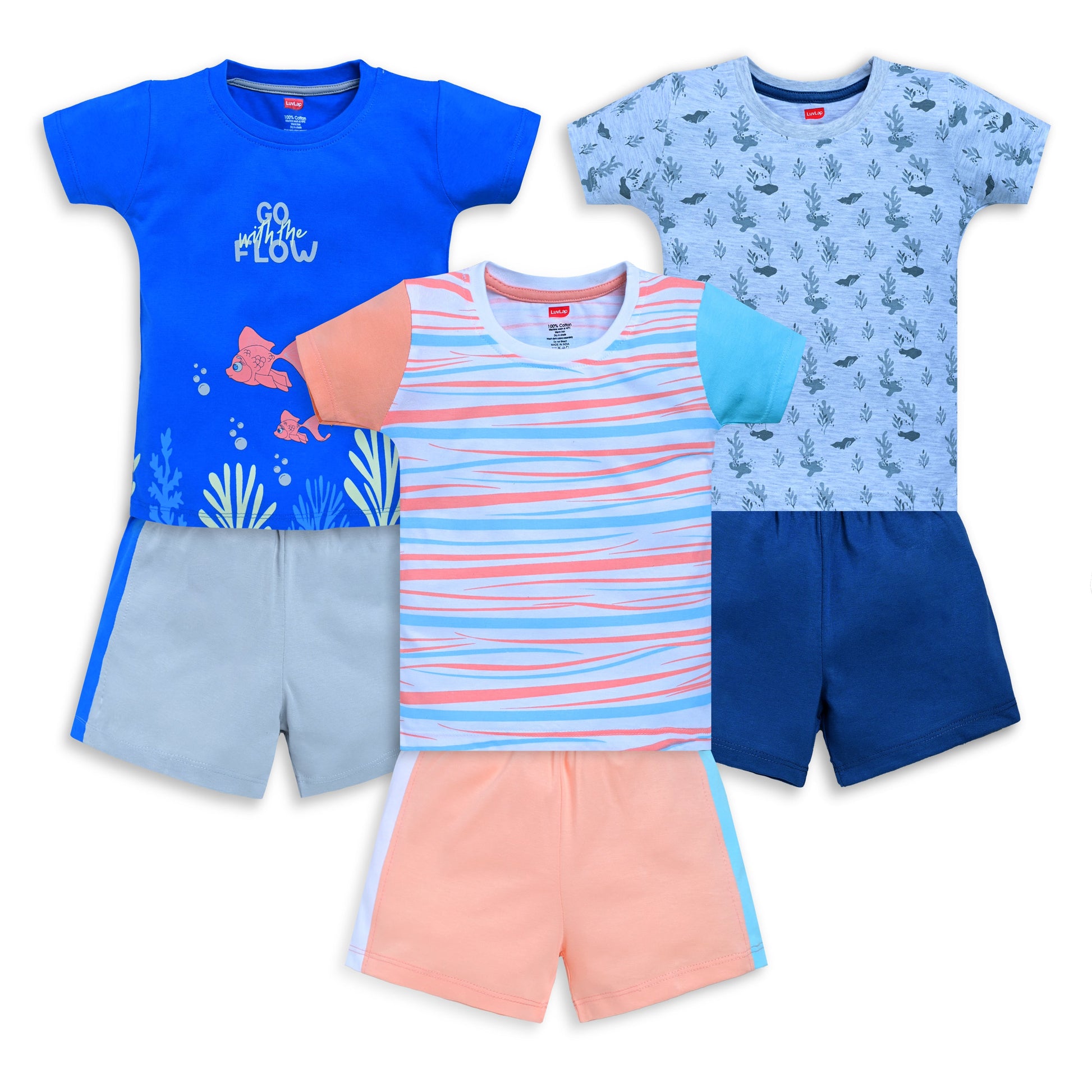 Baby Boys Regular Fit 100% Cotton Half Sleeves Boys T-Shirts and & Shorts Sets Pack Of 3
