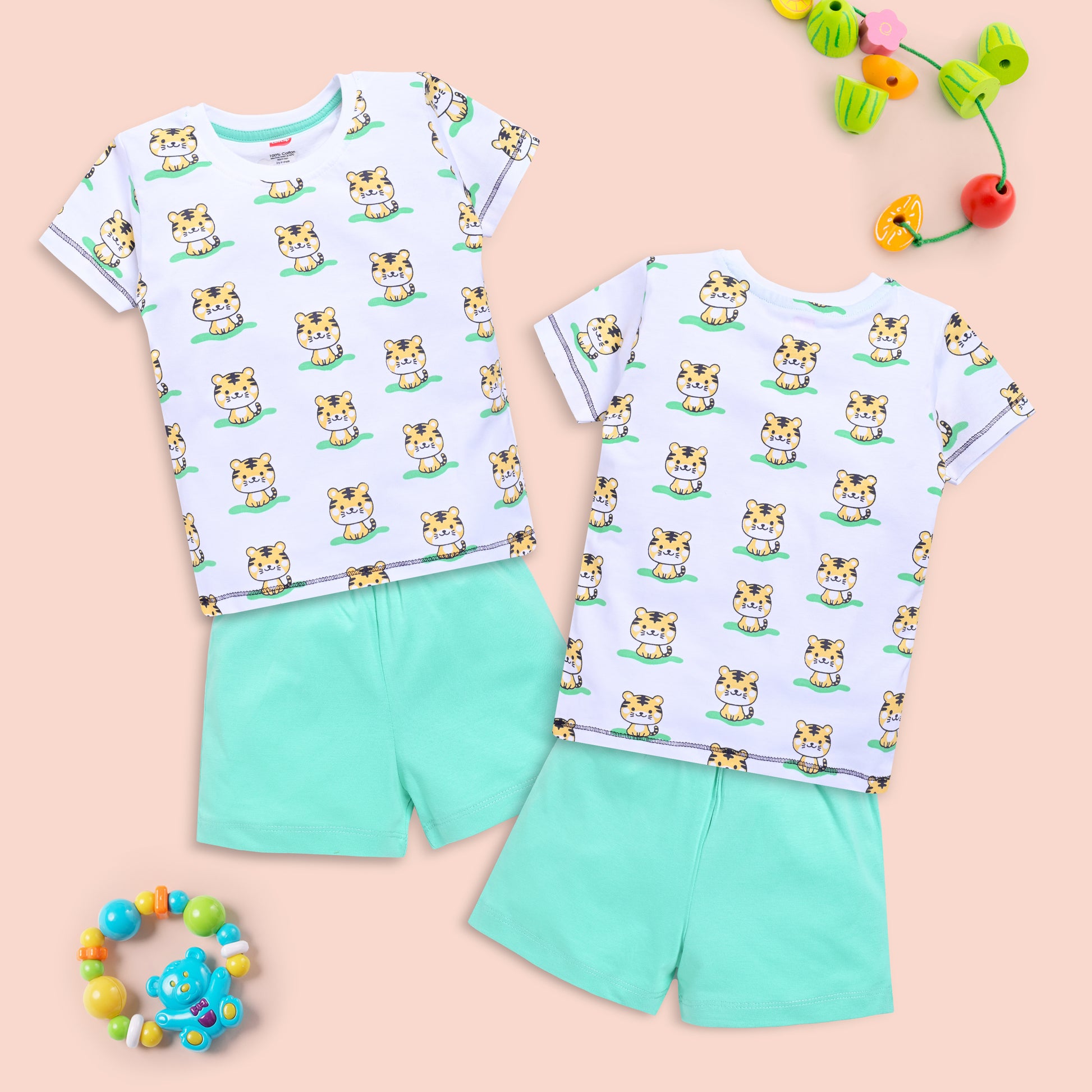 Baby Boys Regular Fit 100% Cotton Half Sleeves Boys T-Shirts and & Shorts Sets Pack Of 3, White, Steel Grey & Sharp Green