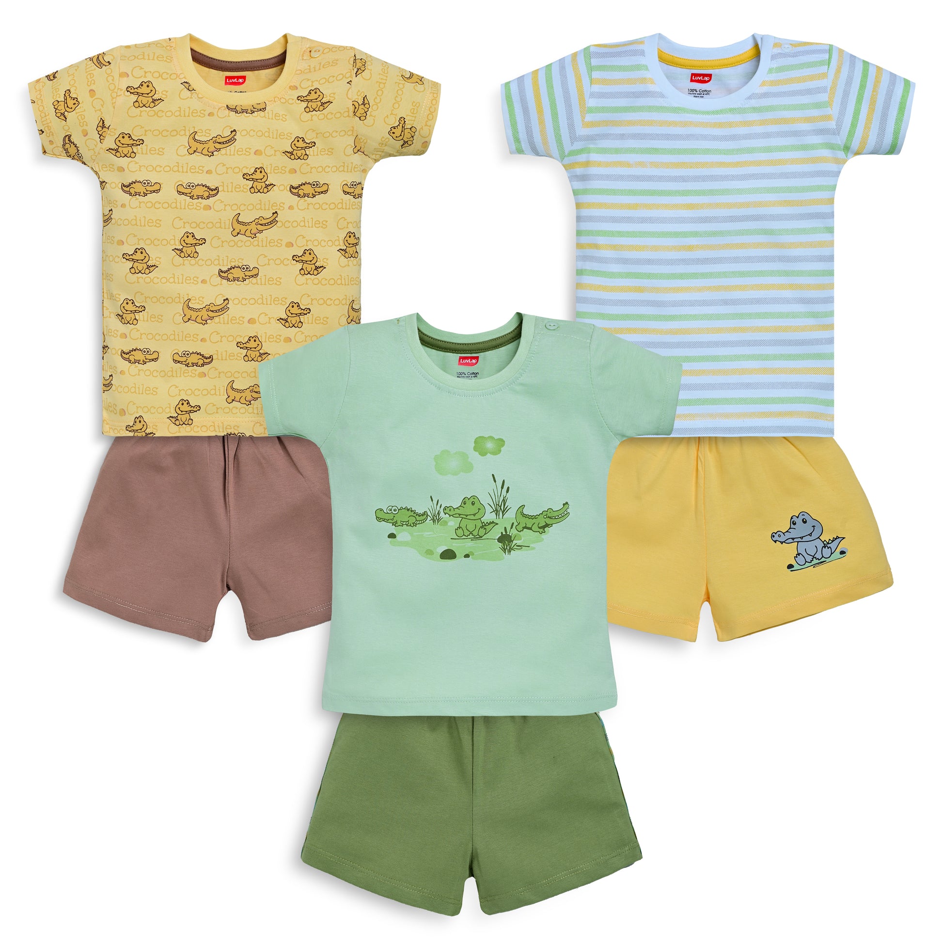 Baby Boys Pack Of 3 Half Sleeve T-Shirt & Shorts Set 100% Cotton