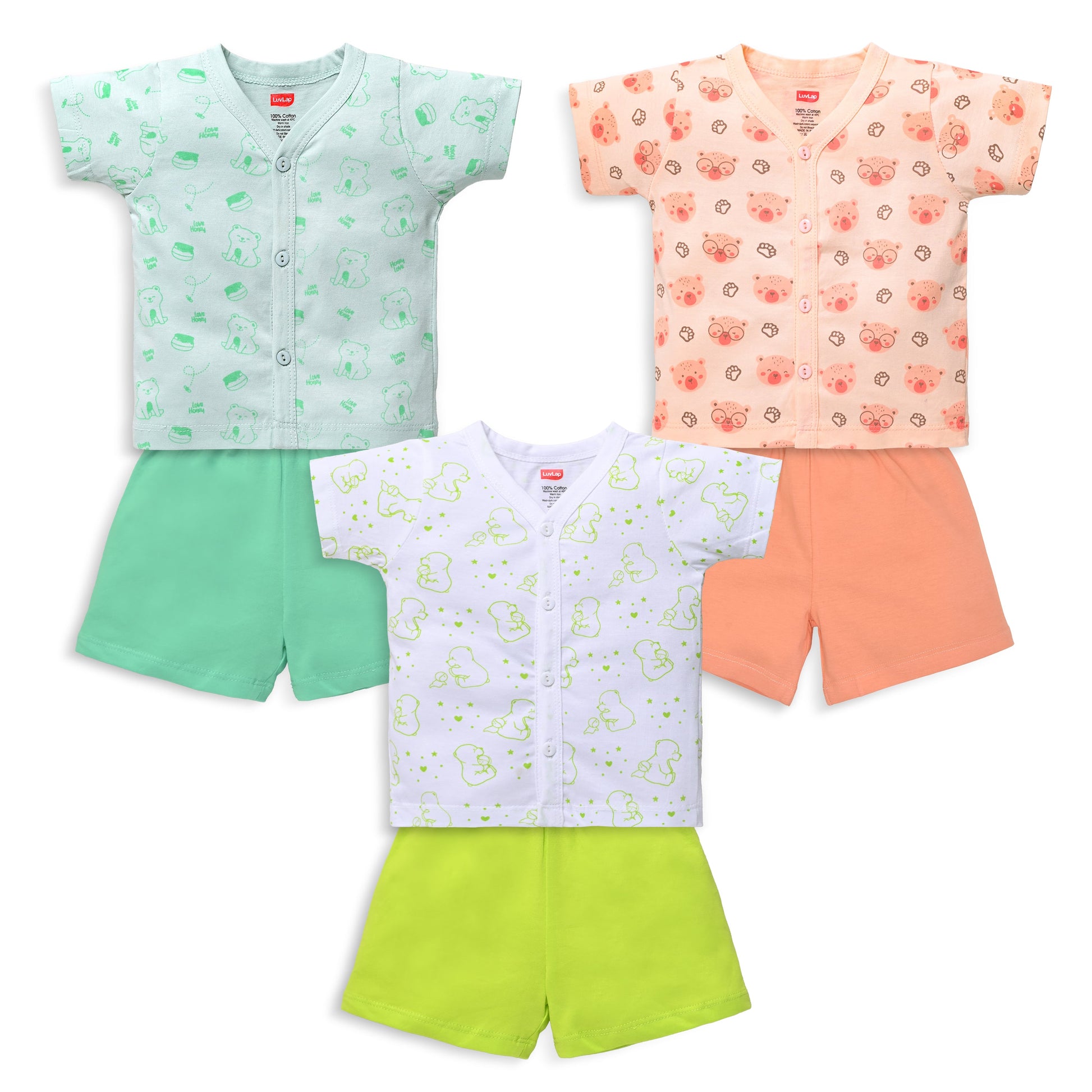 Baby Boys & Baby Girls Pack Of 3 Half Sleeve Jhabla & Shorts Set 100% Cotton