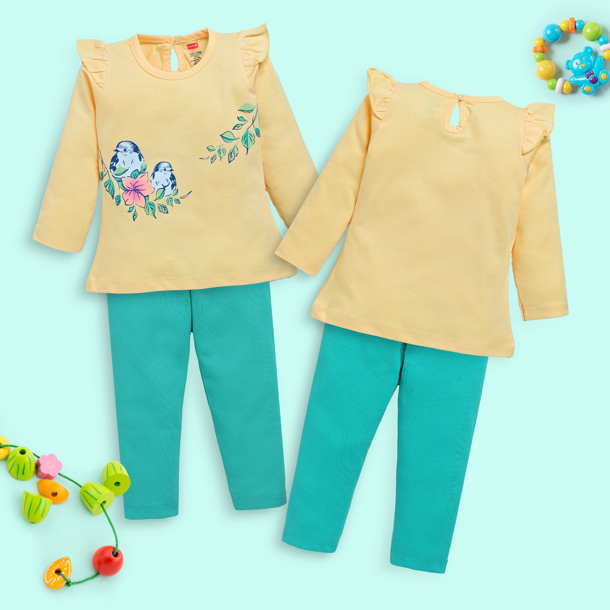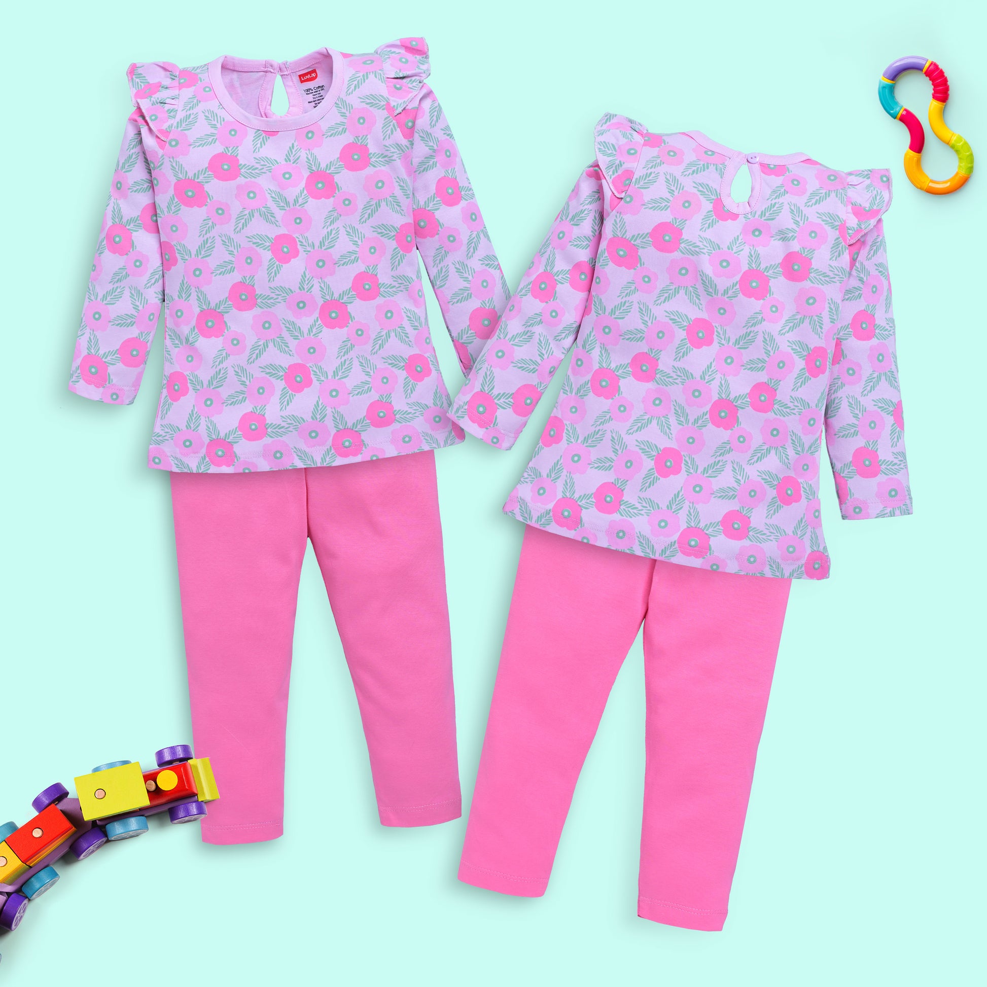 Baby Girls 100% Cotton Full Sleeve Girls Top & Pyjama CoSets Pack Of 3, Baby Pink, Mango & Mint