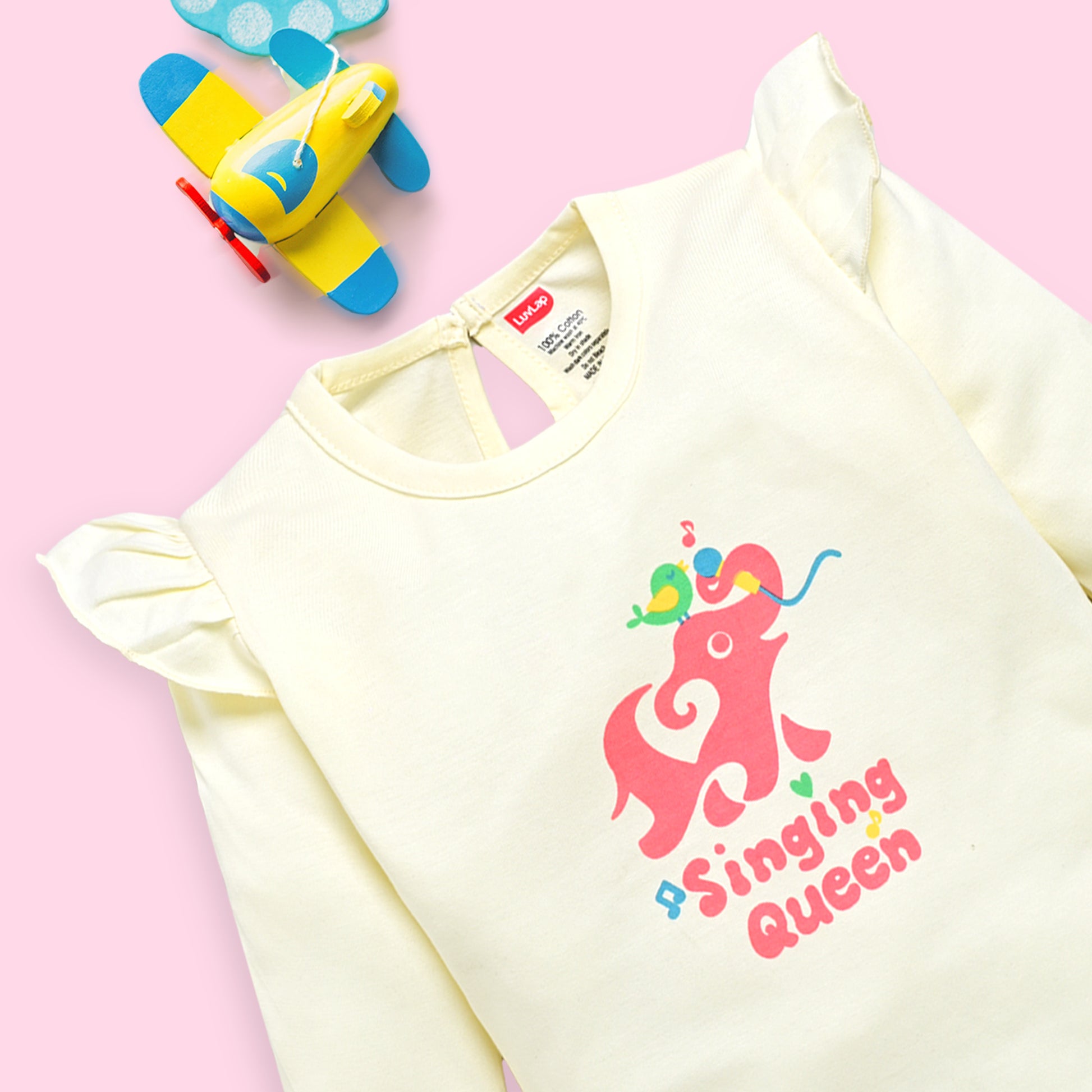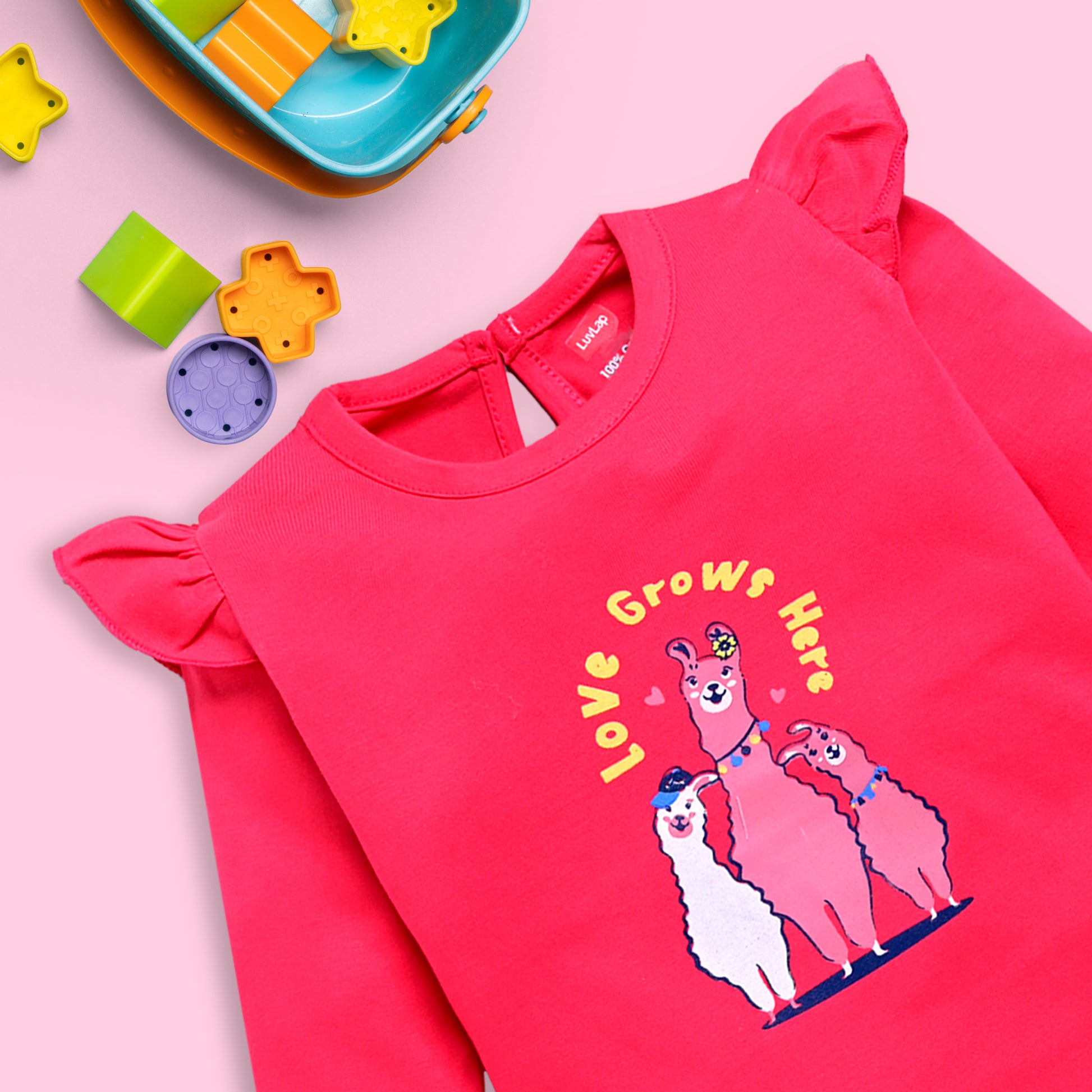 Baby Girls 100% Cotton Full Sleeve Girls Top & Pyjama CoSets Pack Of 3, Coral Red, Off White & Paradise Green