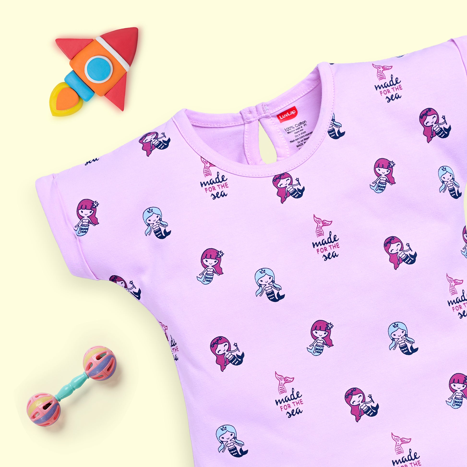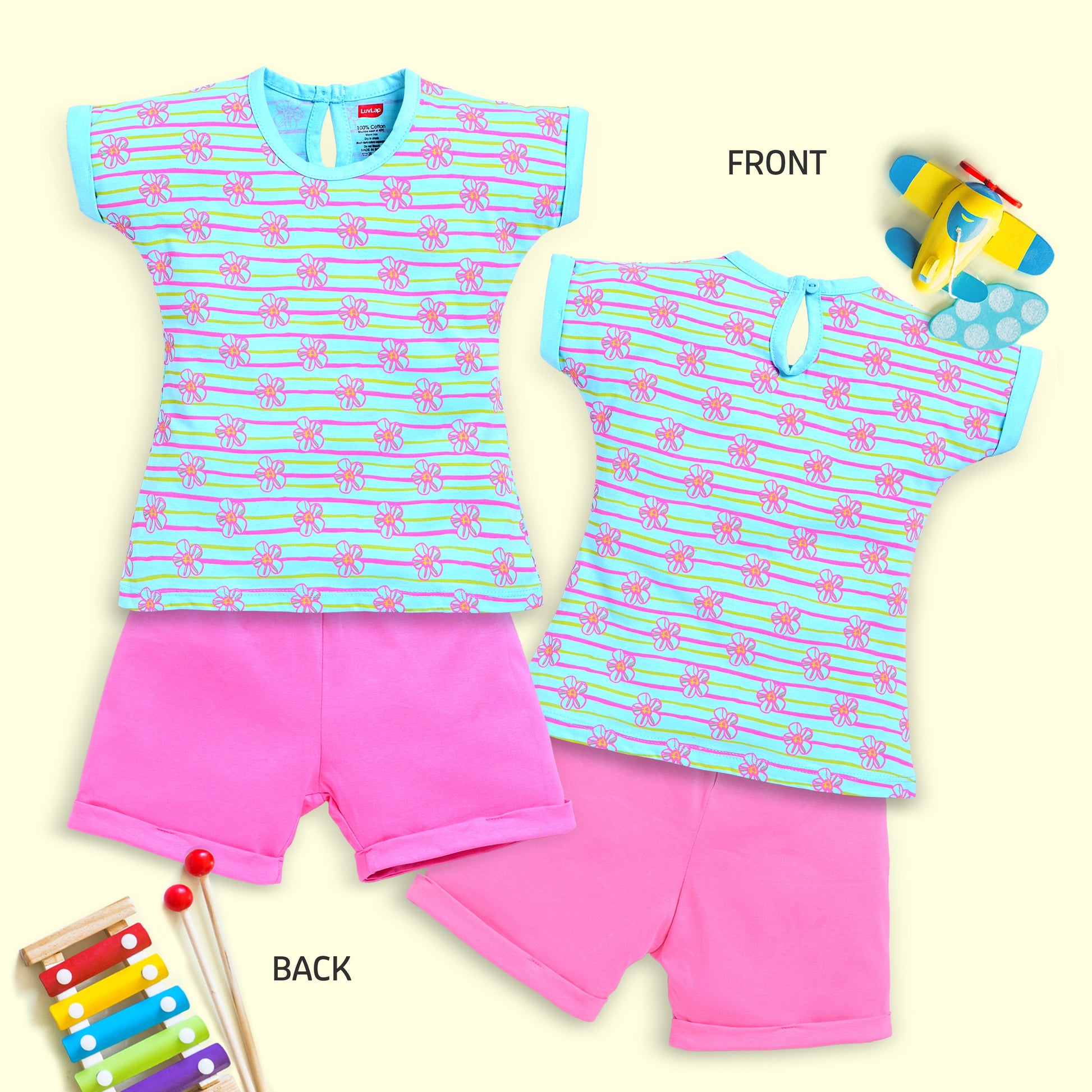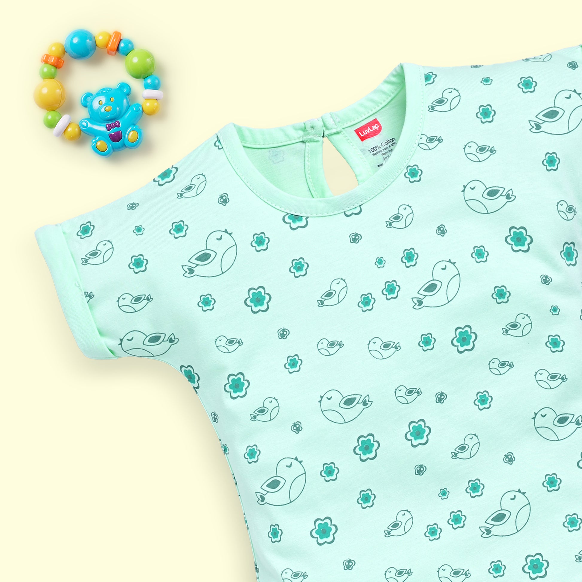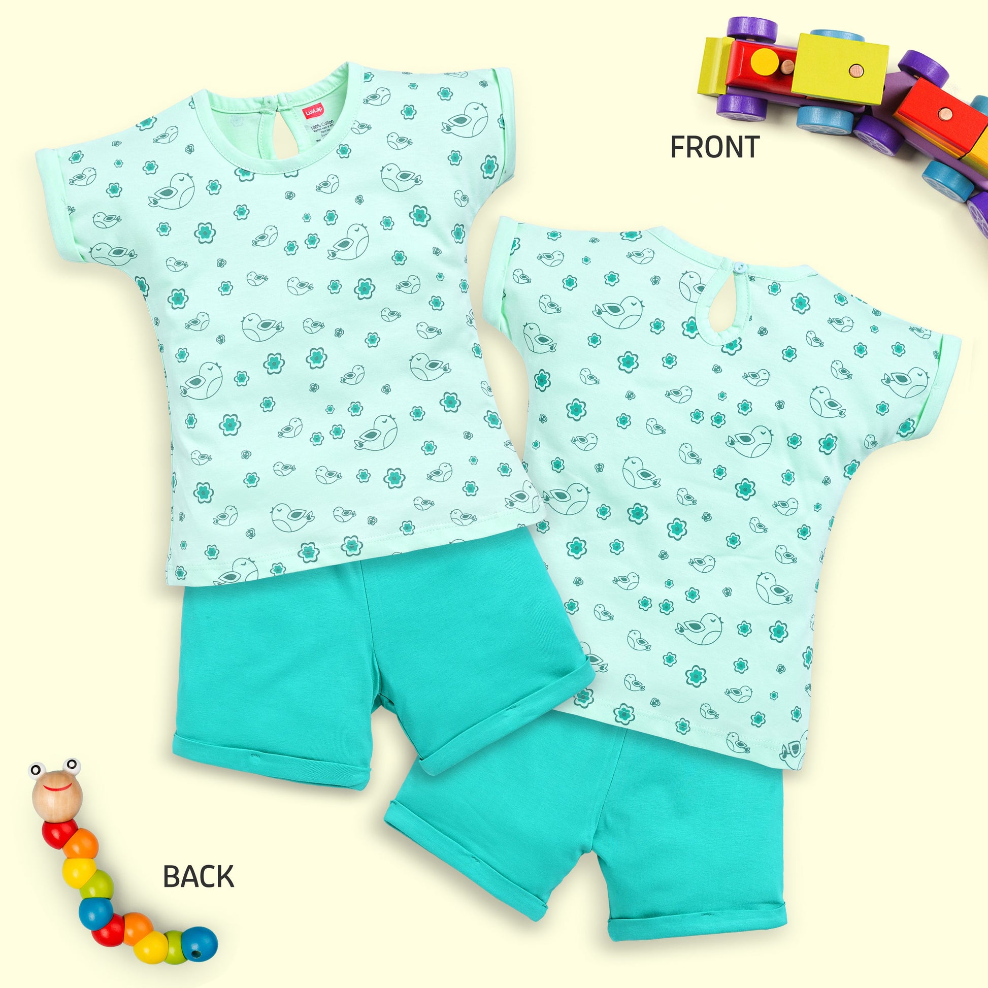 Baby Girls Regular Fit 100% Cotton Half Sleeves Girls Top CoSets Pack Of 3, Lilac Snow, Aqua & Sea Green