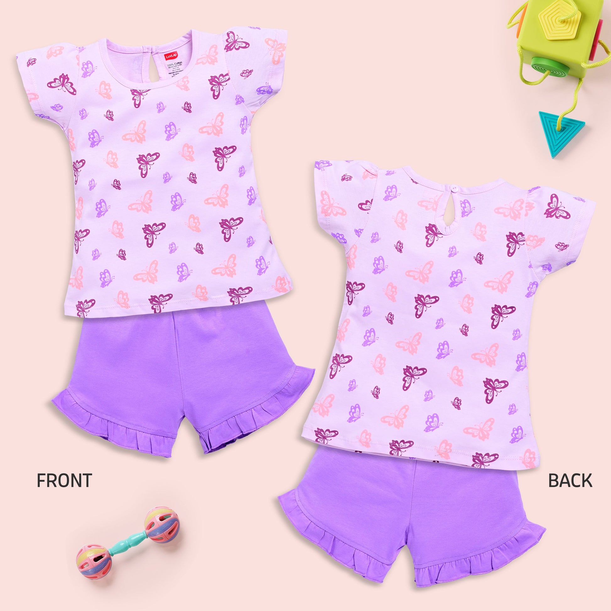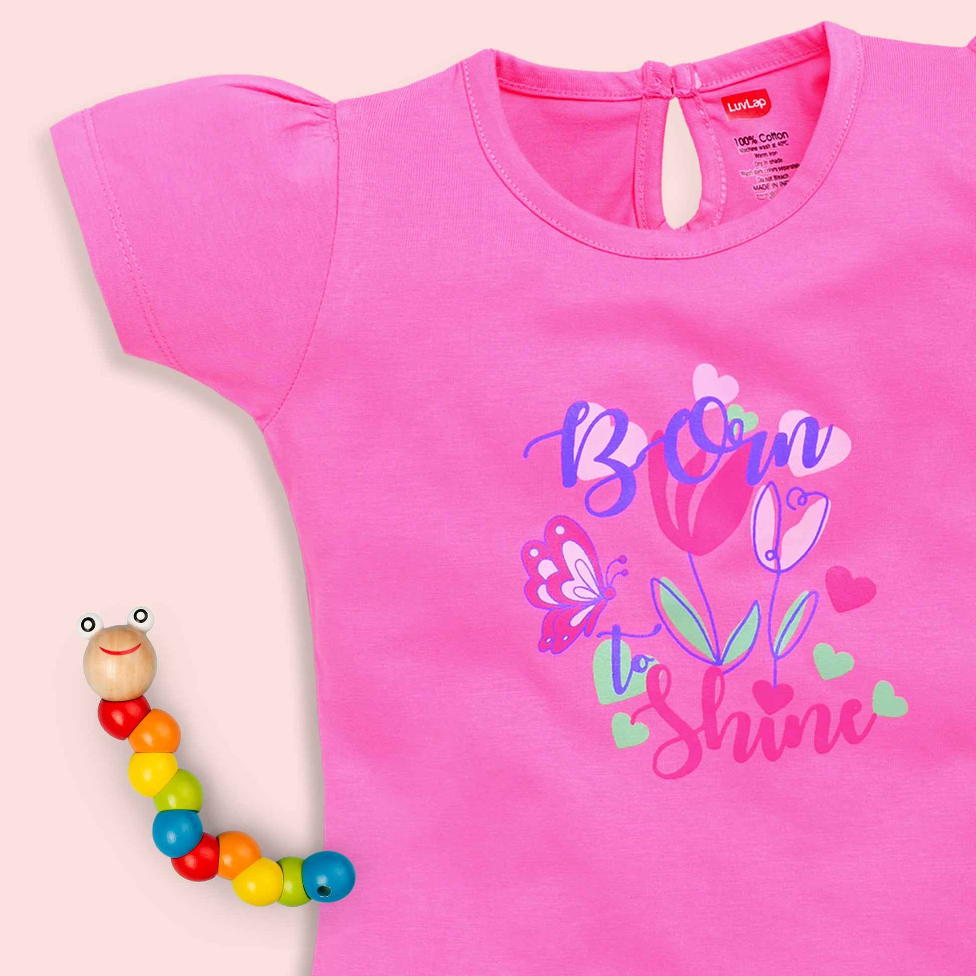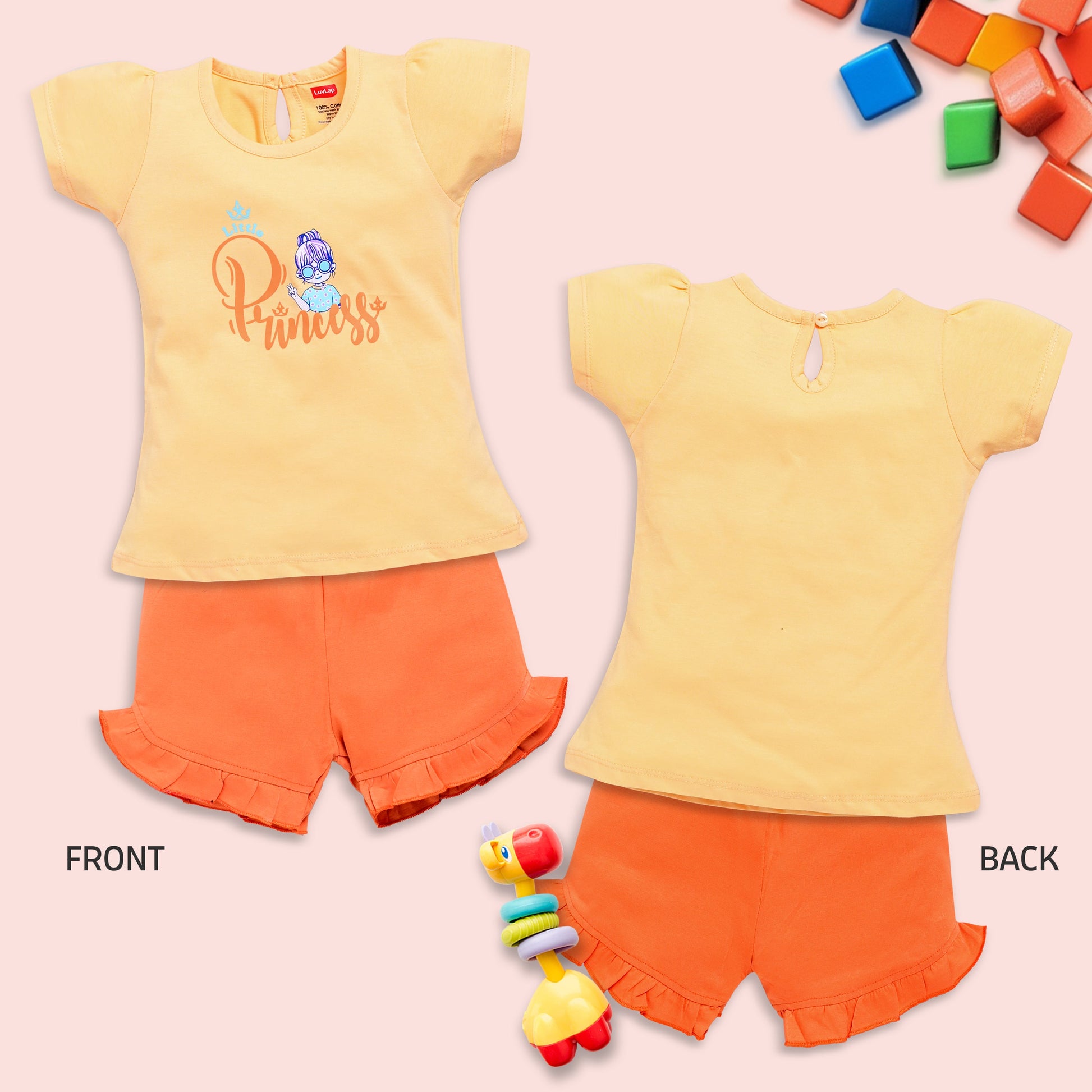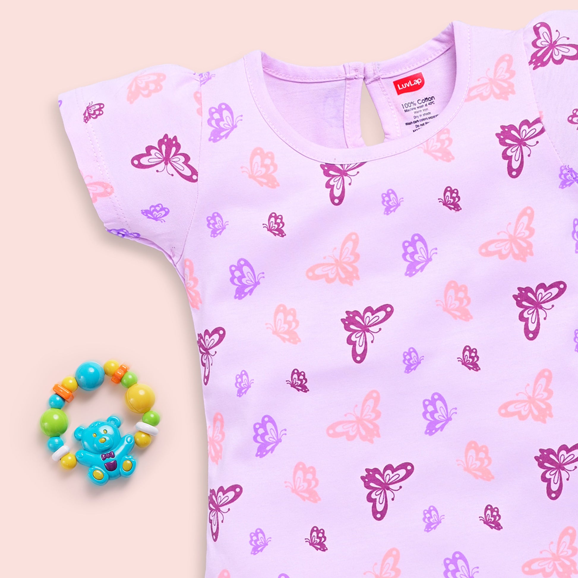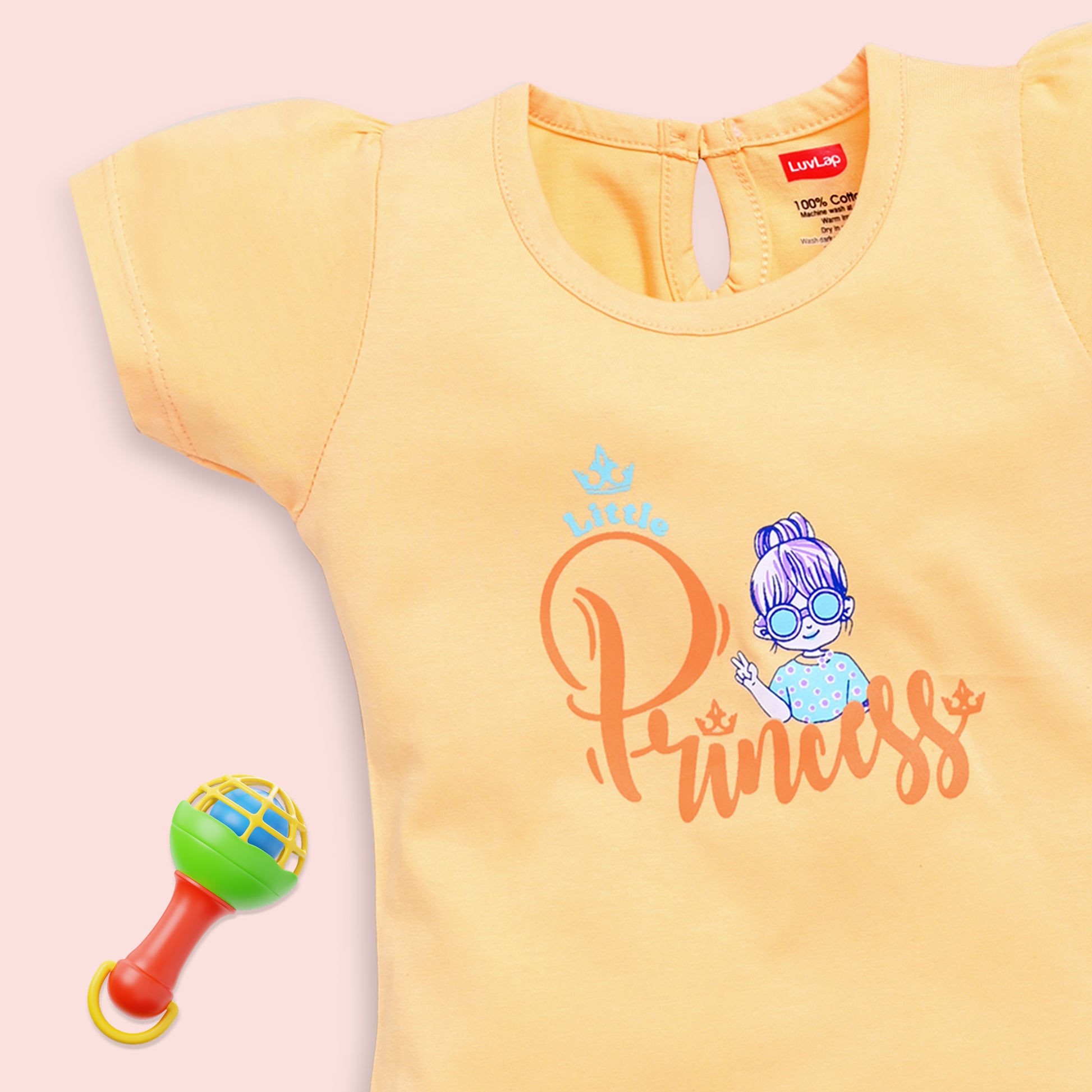 Baby Girls Regular Fit 100% Cotton Half Sleeves Girls Top CoSets Pack Of 3, Morning Glory, Mango & Lilac Snow