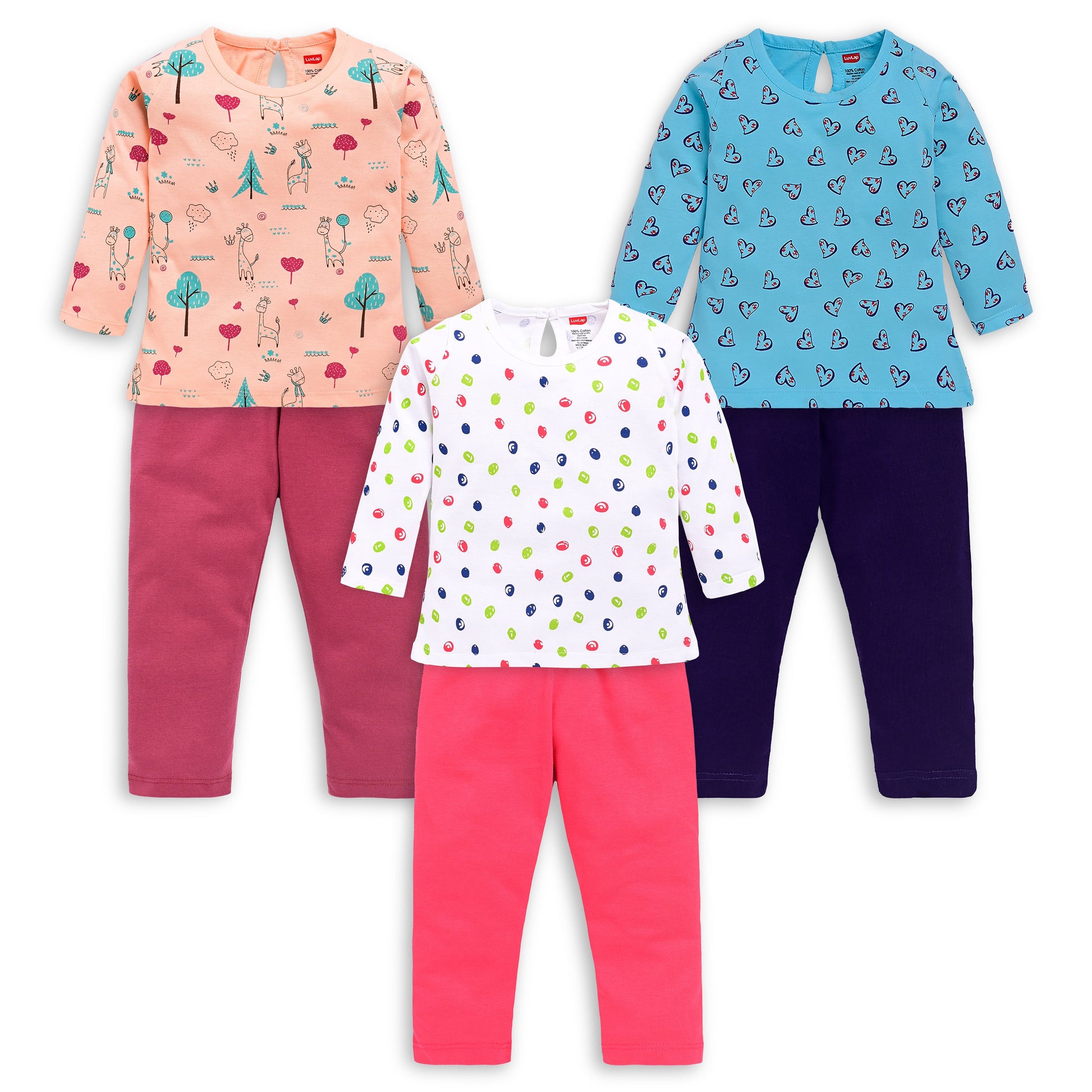 Baby Girls Pack Of 3 Full Sleeve Top & Pyjama Set 100% Cotton