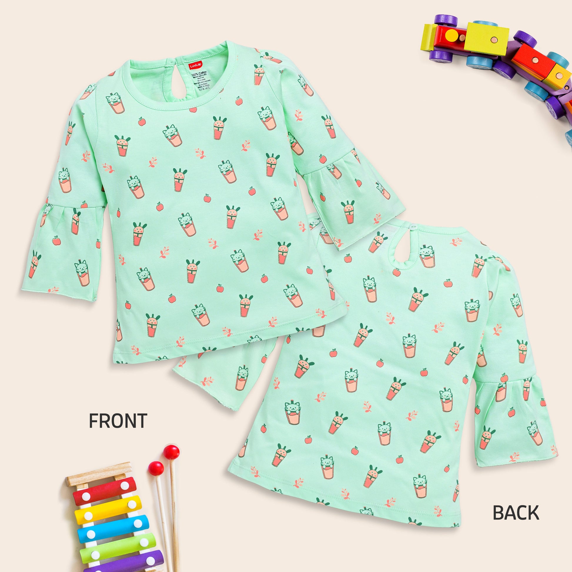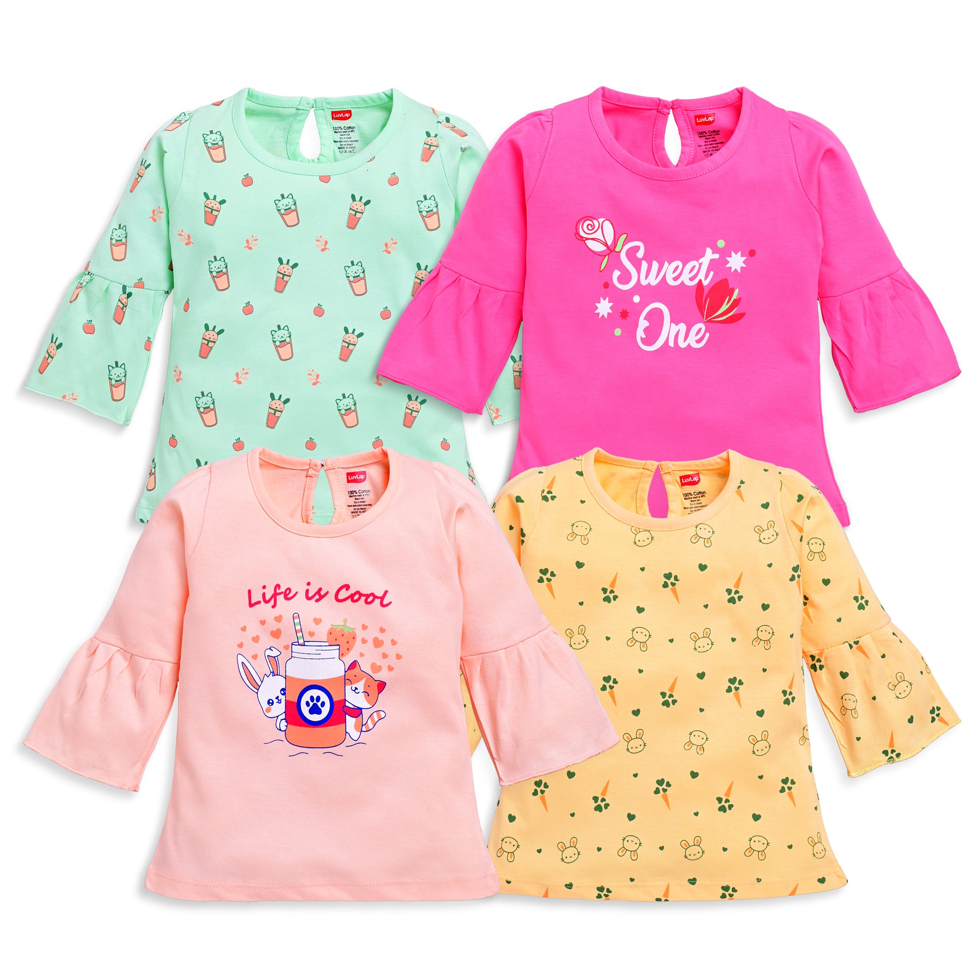 Baby Girls 100% Cotton Full Sleeve Girls Top Pack Of 4, Lt. Peach, Mango, Morning Glory & Sea Green