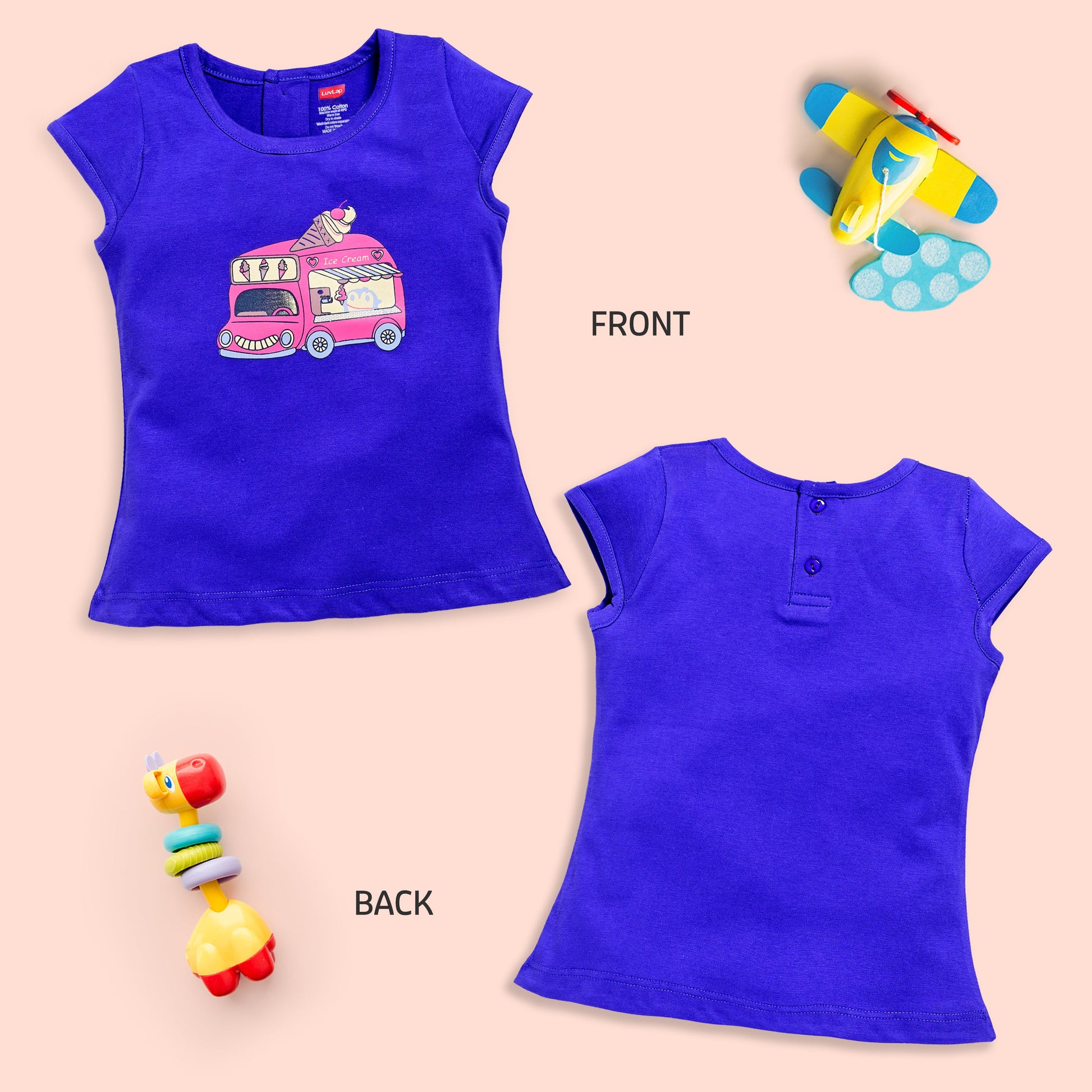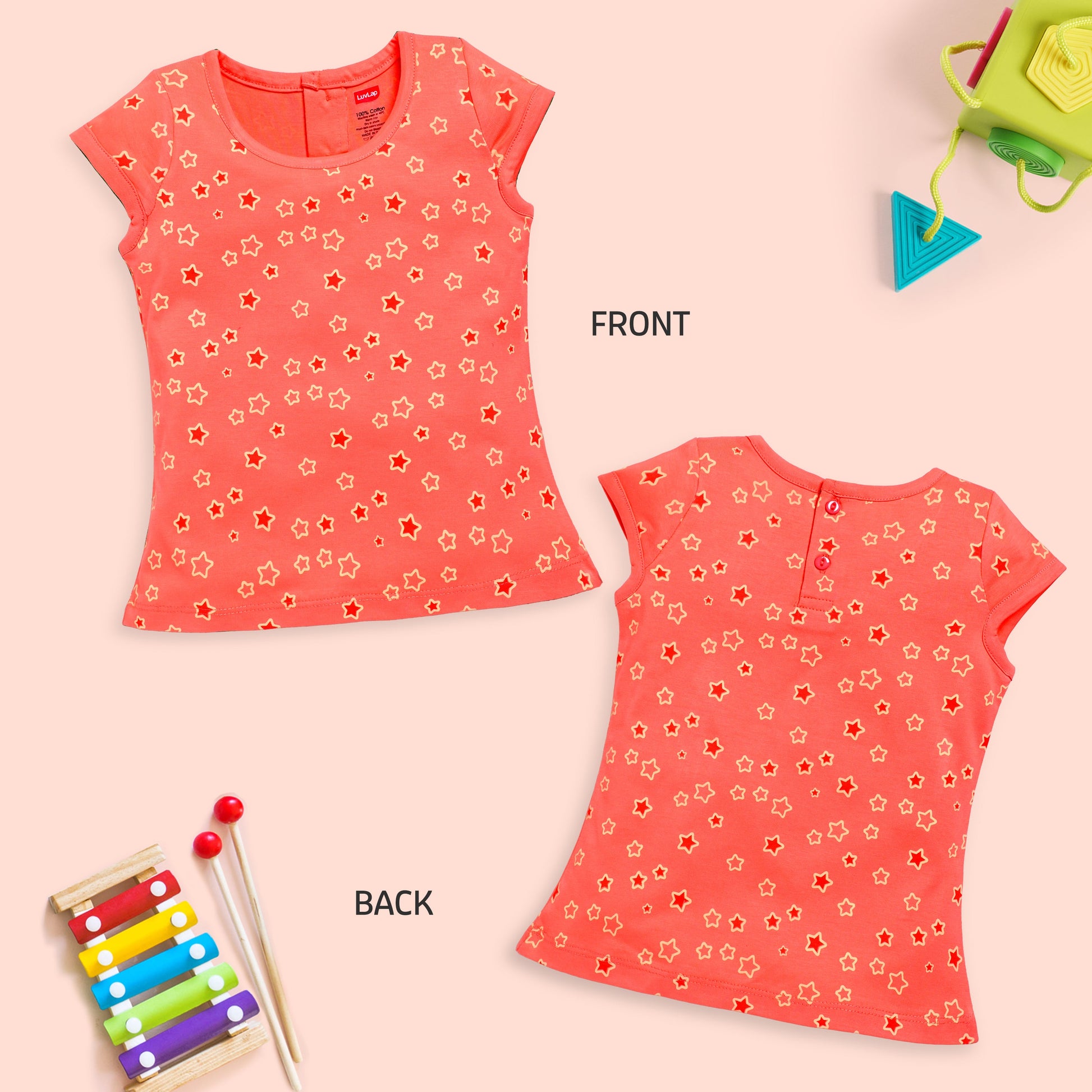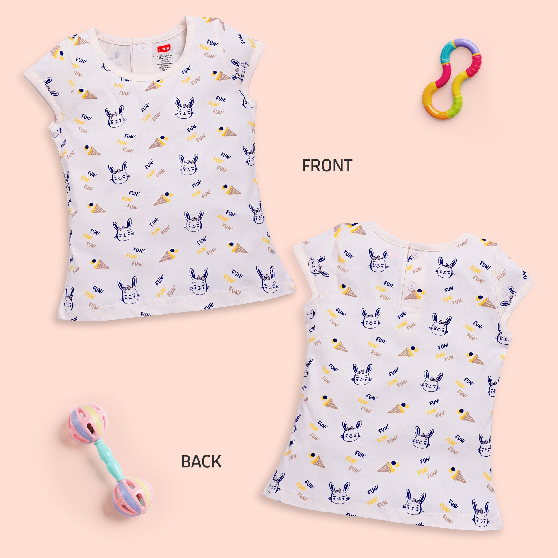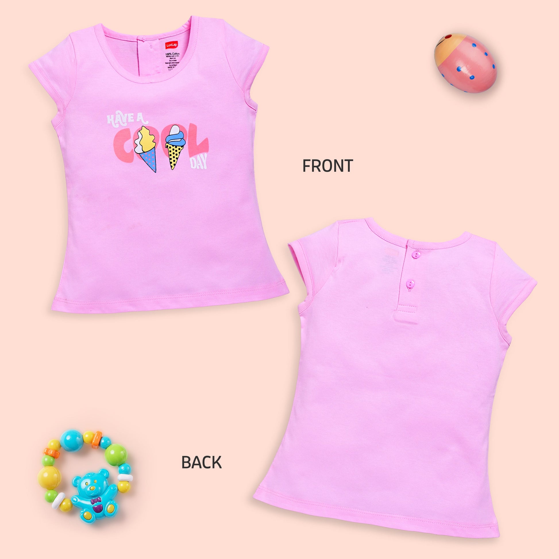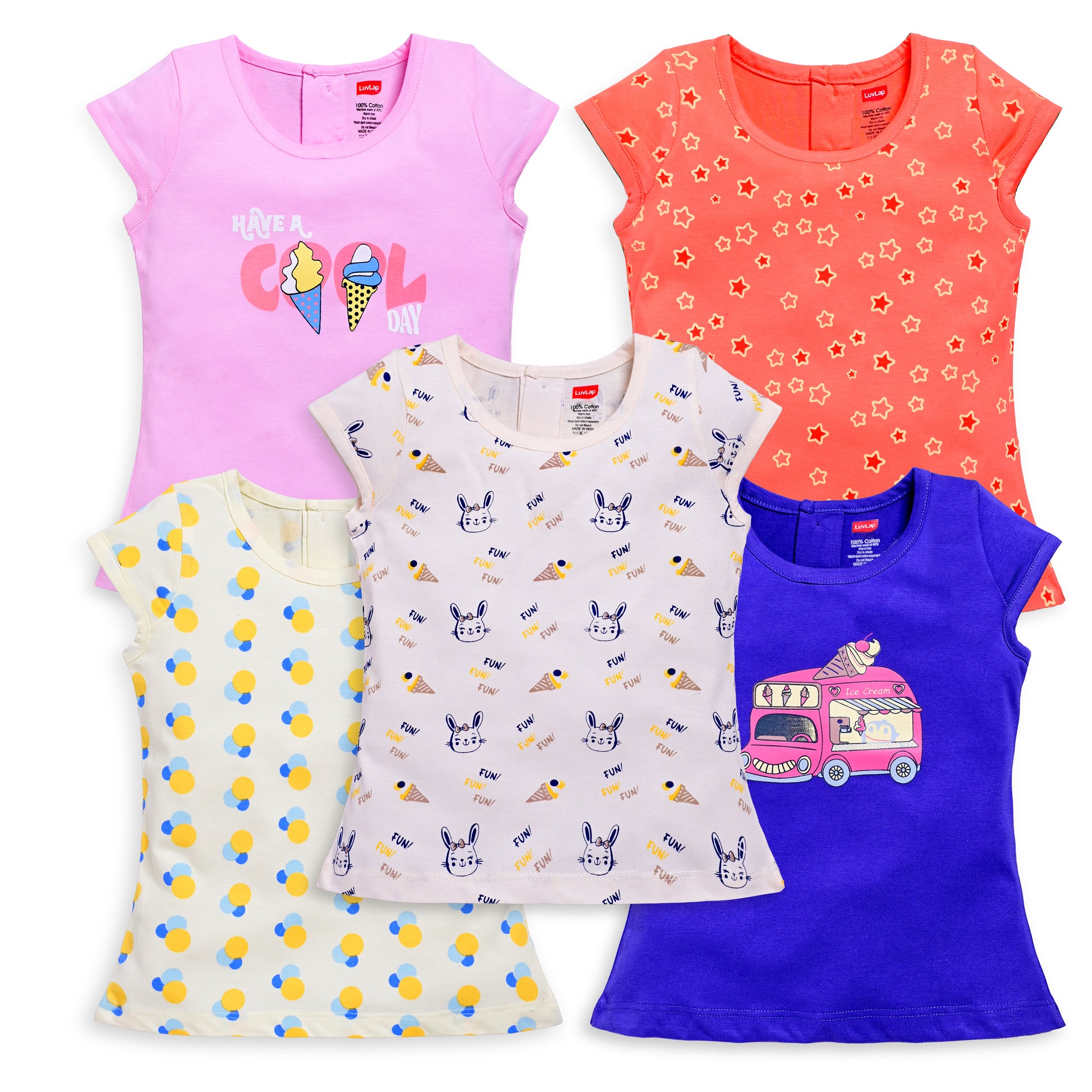 Baby Girls Regular Fit 100% Cotton Half Sleeves Girls Top Pack Of 5, Baby Pink, Purple Opulence, Desert Flower, Off White & Sea Salt