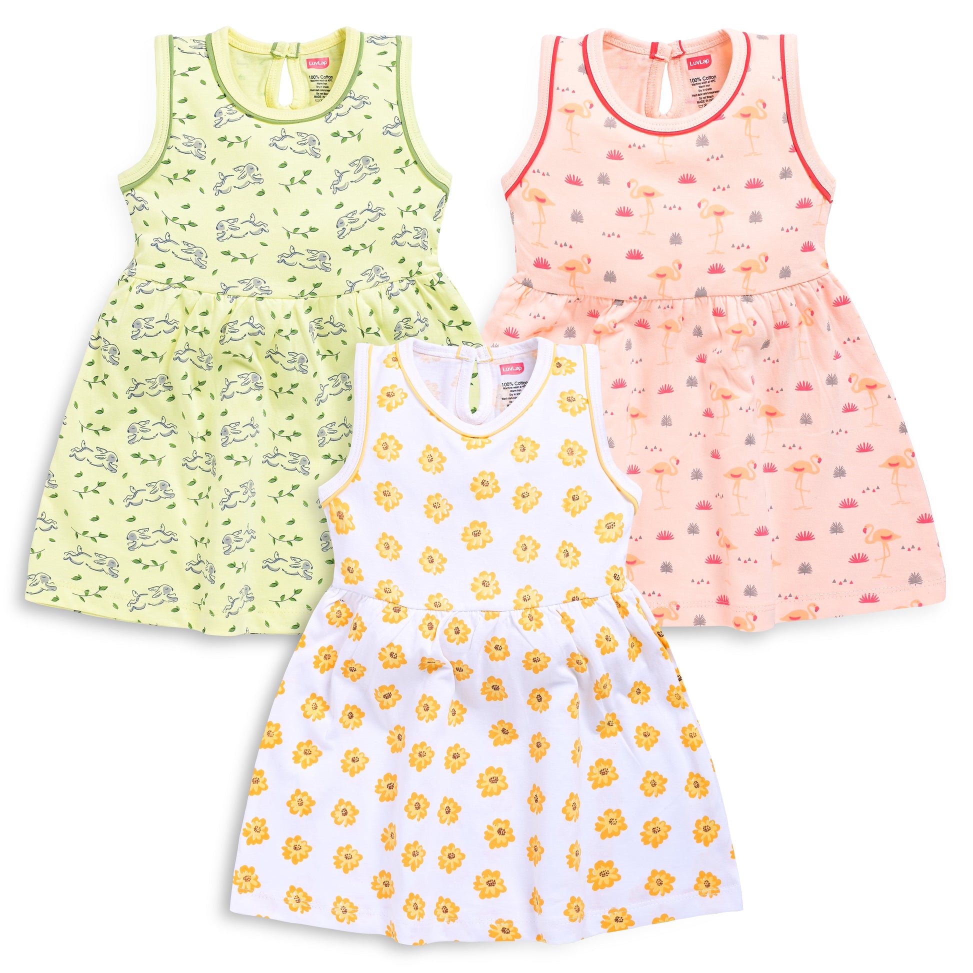 Baby Girl 100% Cotton Sleeveless Girls Frock Pack Of 3