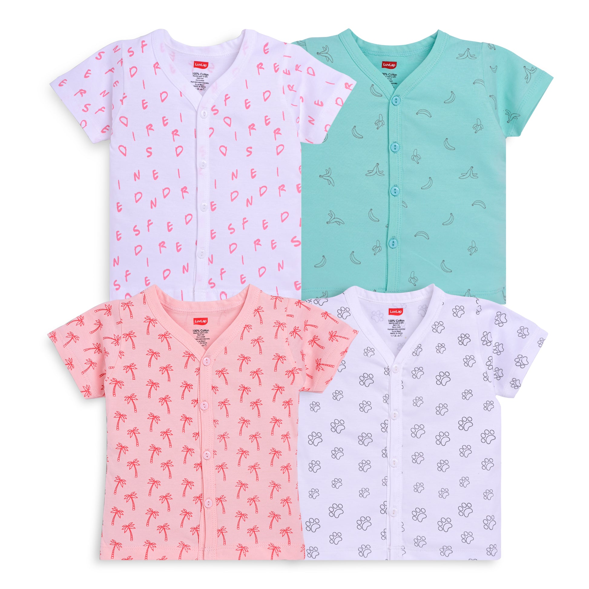 Baby Boys & Baby Girls Pack Of 4 Half Sleeve Jhabla, 100% Cotton