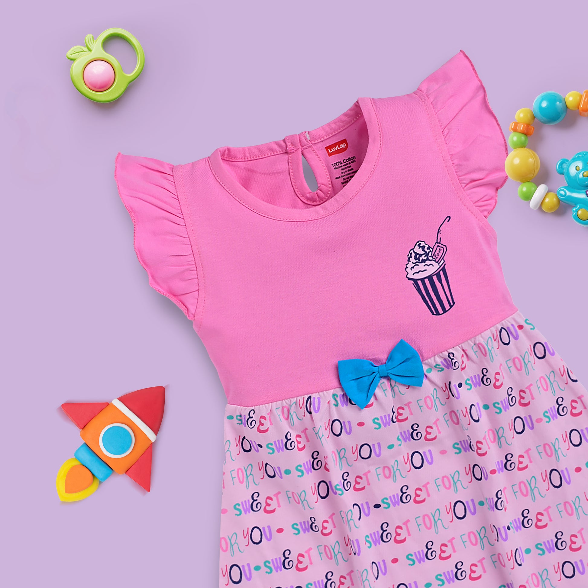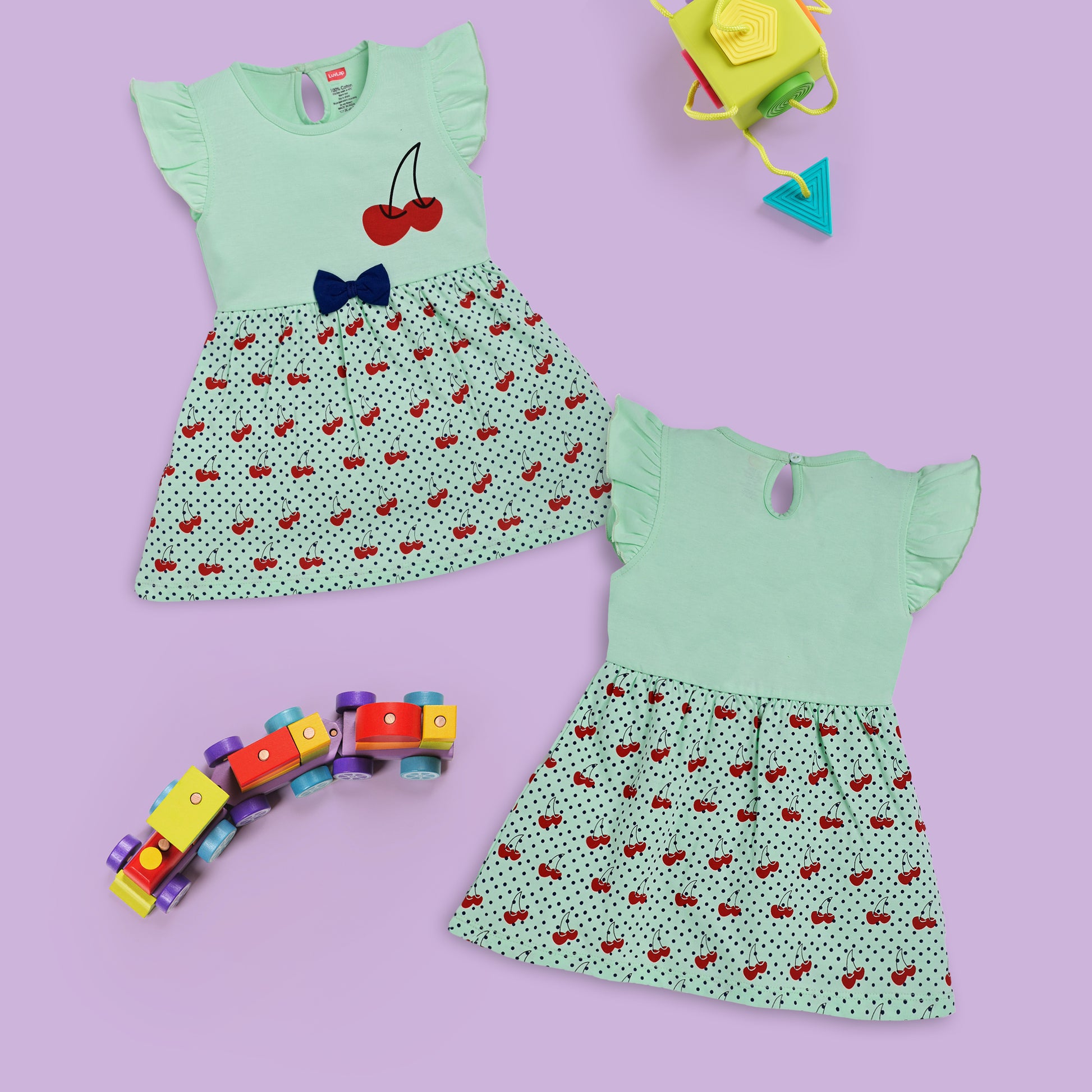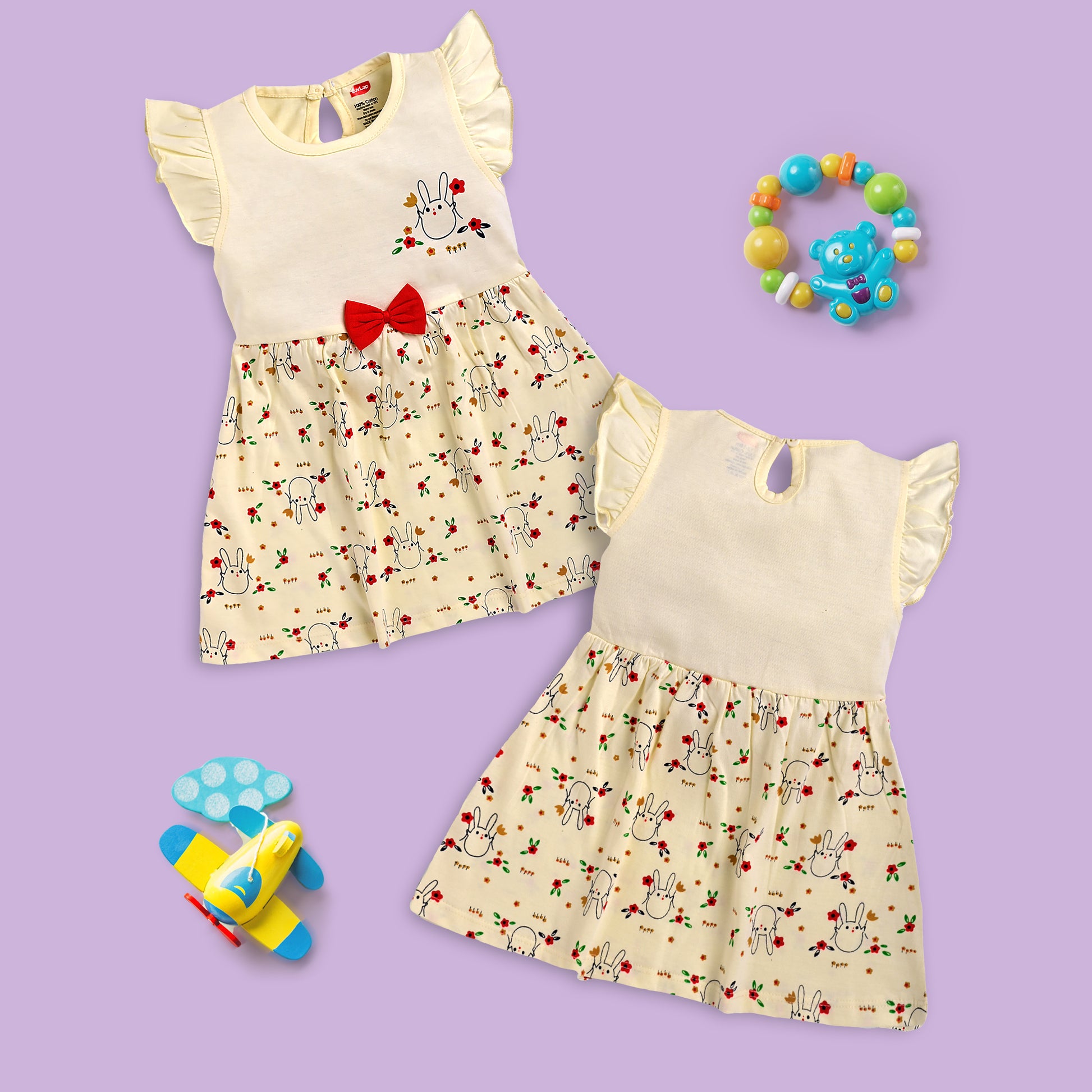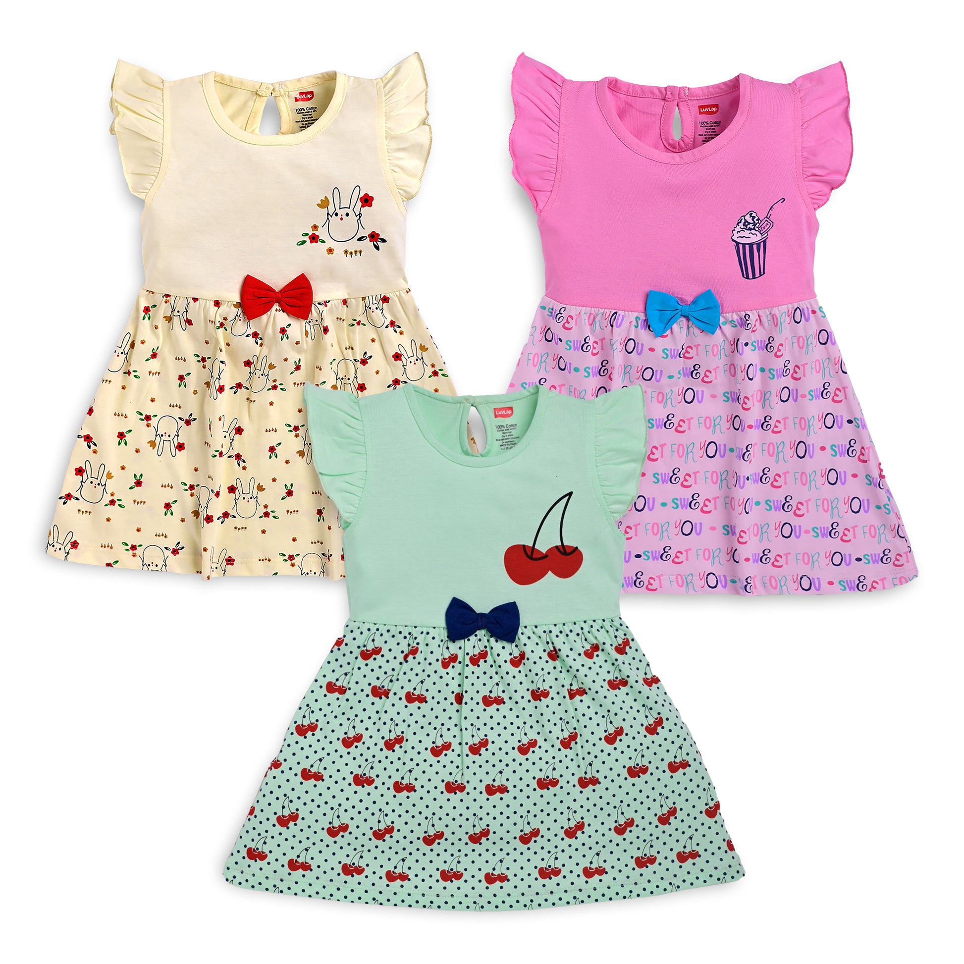 Baby Girls Pack Of 3 Half Sleeve Frock 100% Cotton