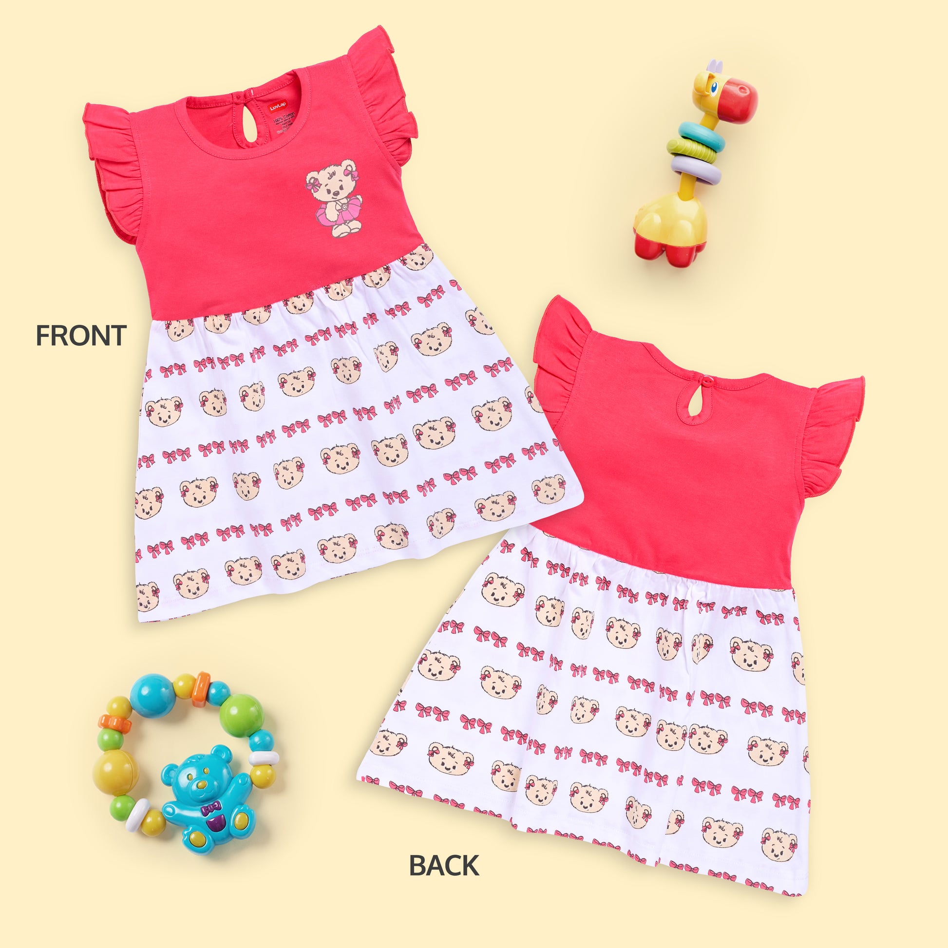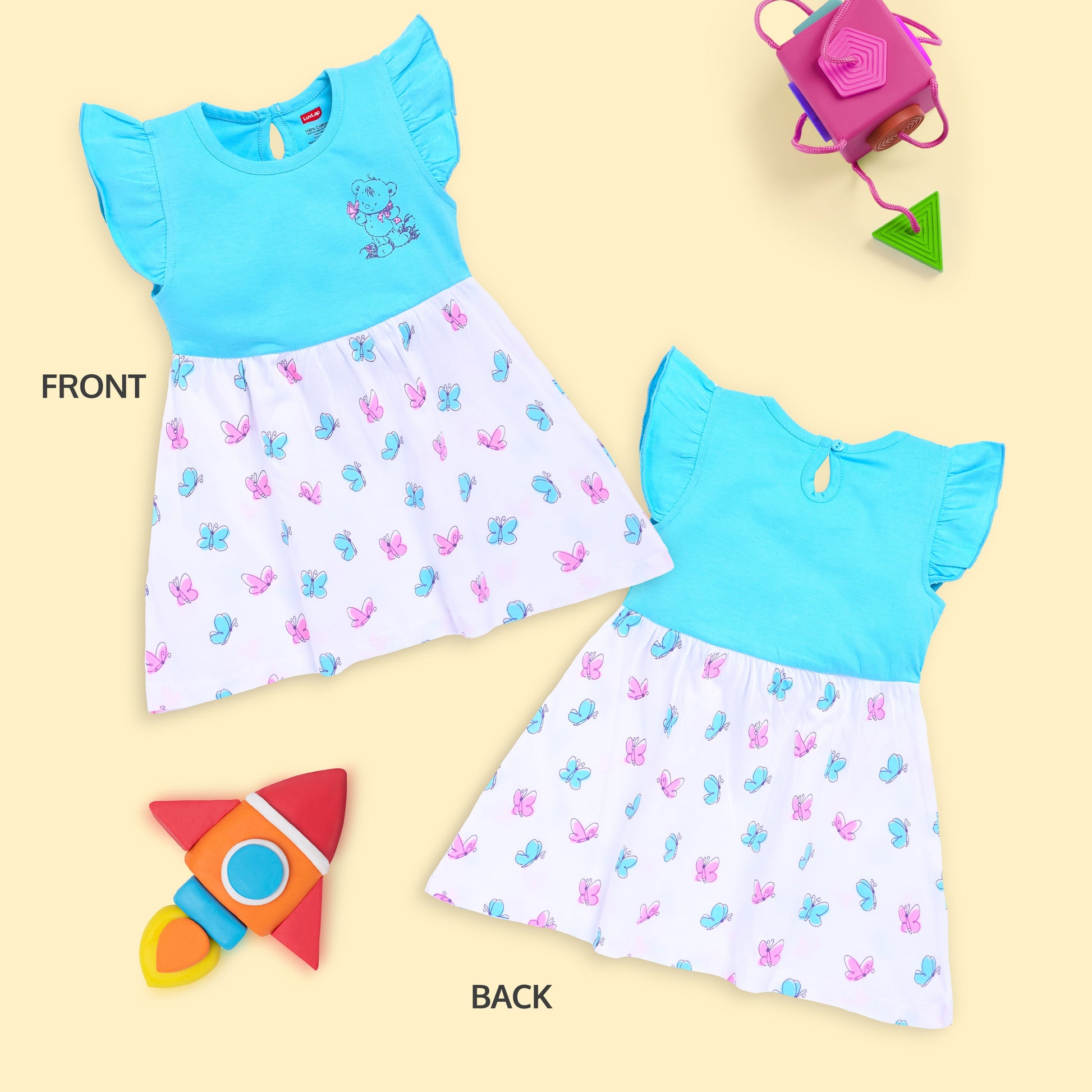 Baby Girls Pack Of 3 Half Sleeve Frock 100% Cotton