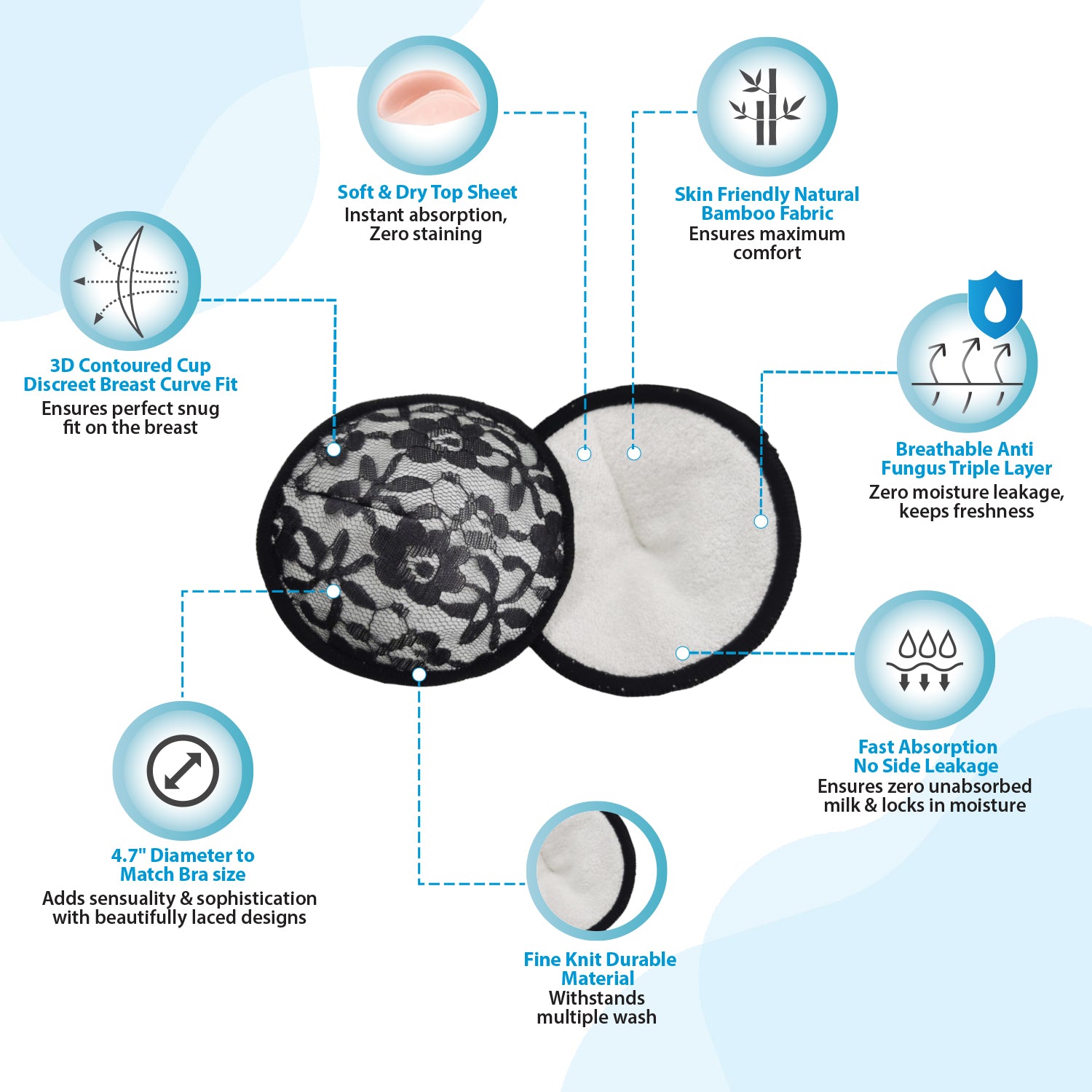 - Washable and reusable pads & nipple pads reduce long term cost. Includes laundry bag to protect nursing pads from wear and tear during machine wash