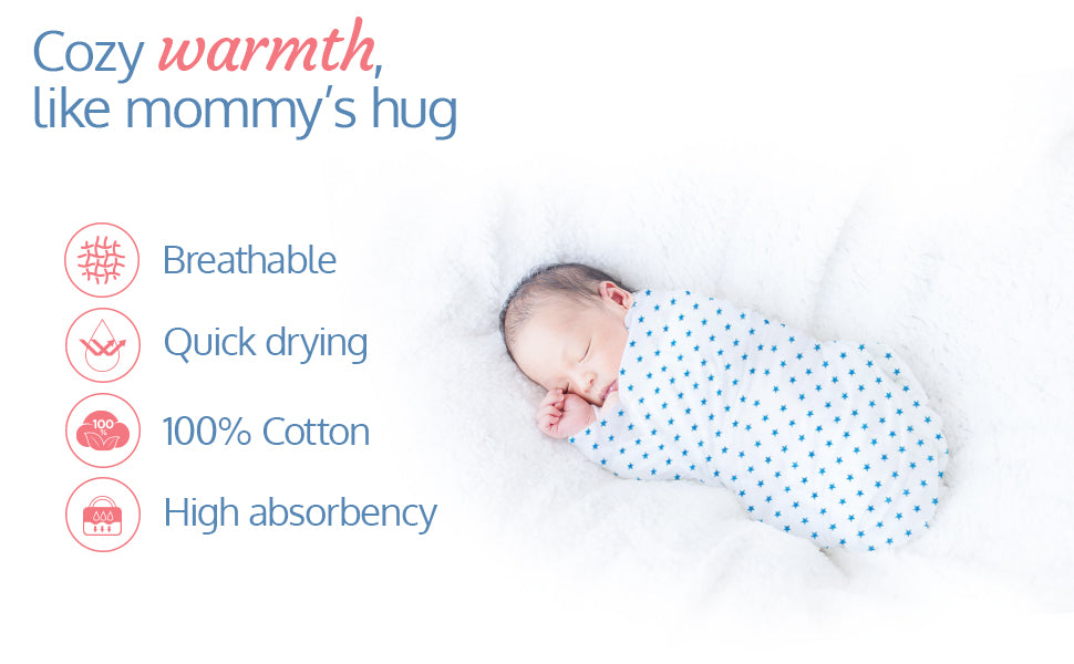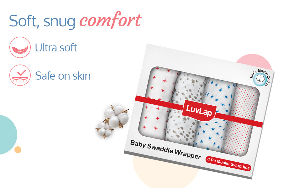 - Ideal to wrap your new born baby in this ultra-soft swaddle as they feel safe and comfortable. Designed for snug swaddling, these provide the baby comfort and keeps them in right temperature.