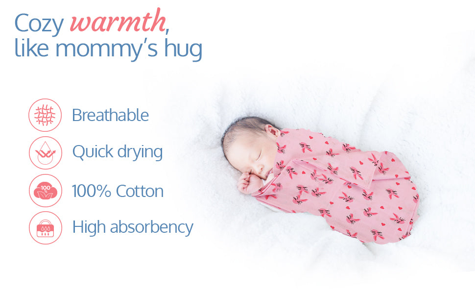 - Ideal to wrap your new born baby in this ultra-soft swaddle as they feel safe and comfortable. Designed for snug swaddling, these provide the baby comfort and keeps them in right temperature.