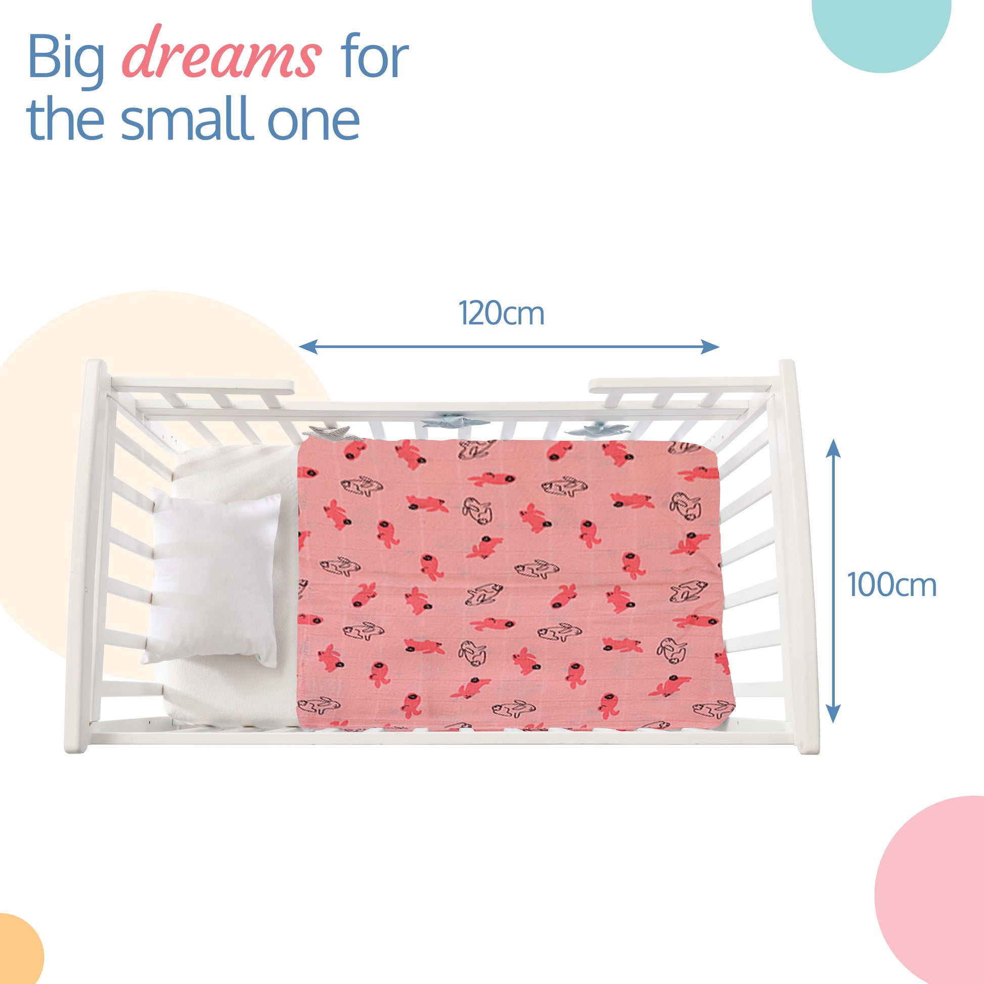100% Cotton Muslin Baby Swaddles set, Penguin Rabbit Print, 0-18 Month+, Pack of 3