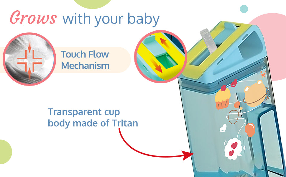 - Touch Flow Mechanism: Effortless sipping experience for your baby, promoting independent drinking skills.