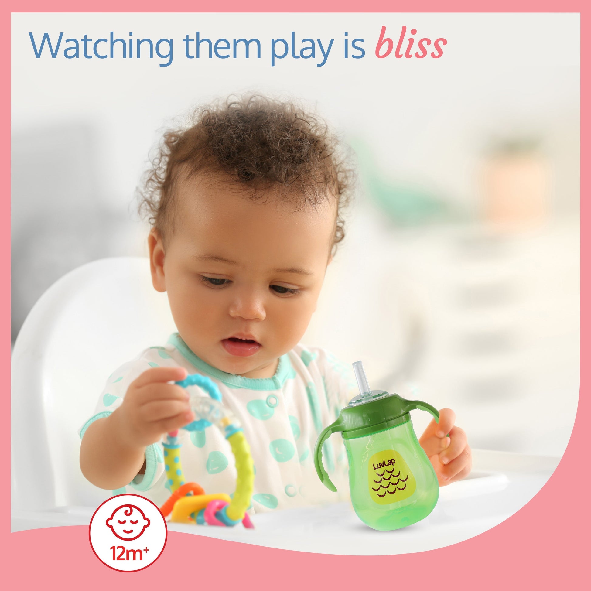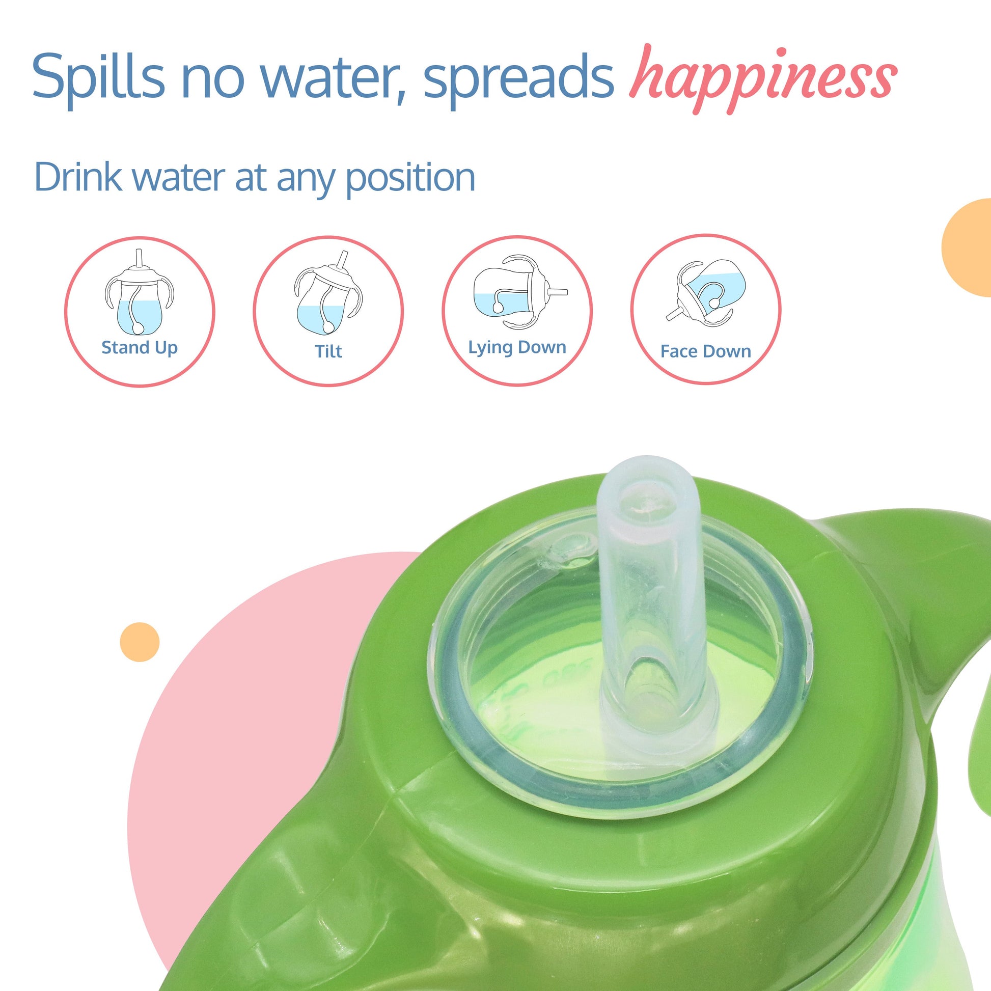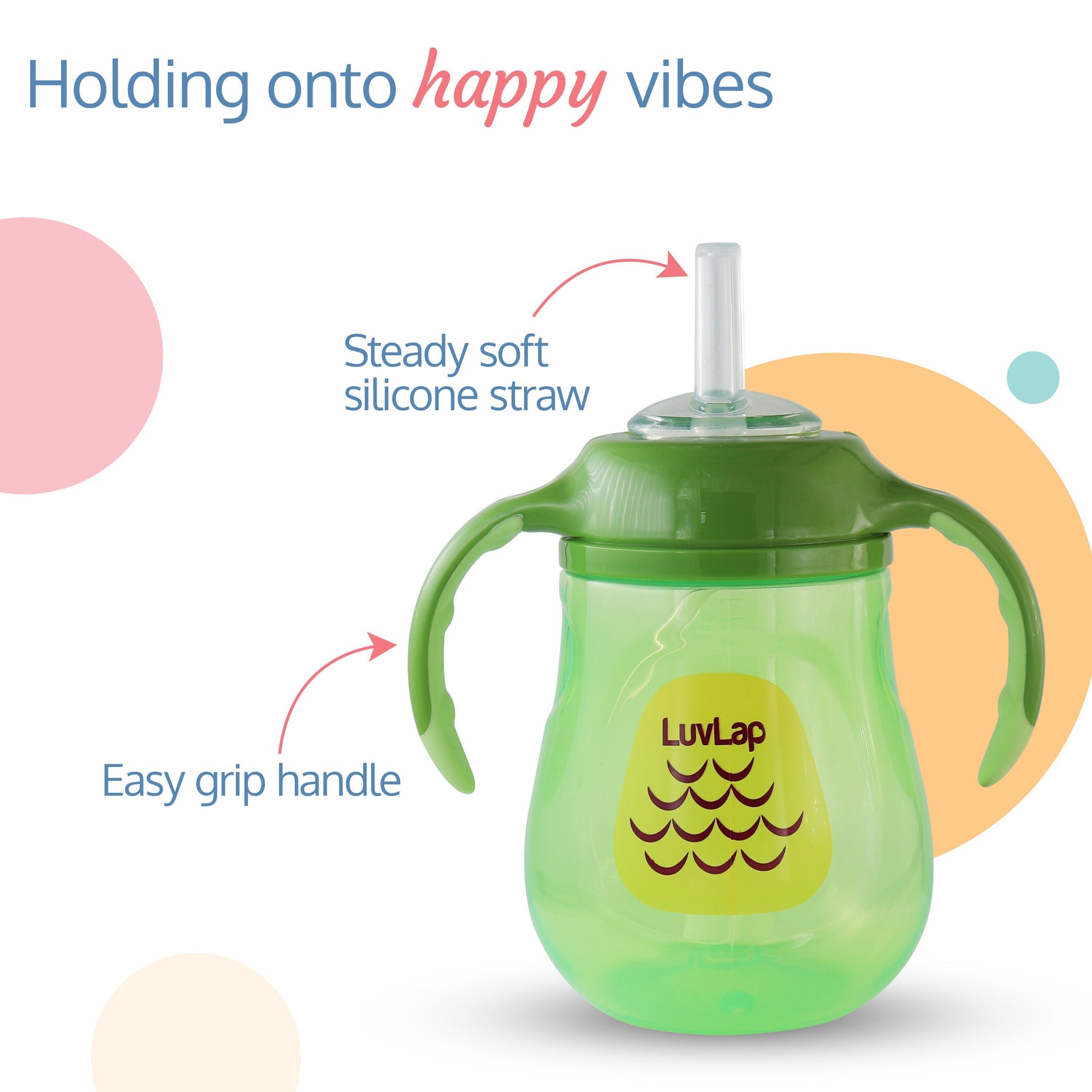 LuvLap Clever Frog Straw Sipper comes with a spill proof weighted straw. It allows child to drink at any angle easily. Ergonomically designed easy grip handles are specially designed as per requirement of small baby hands.