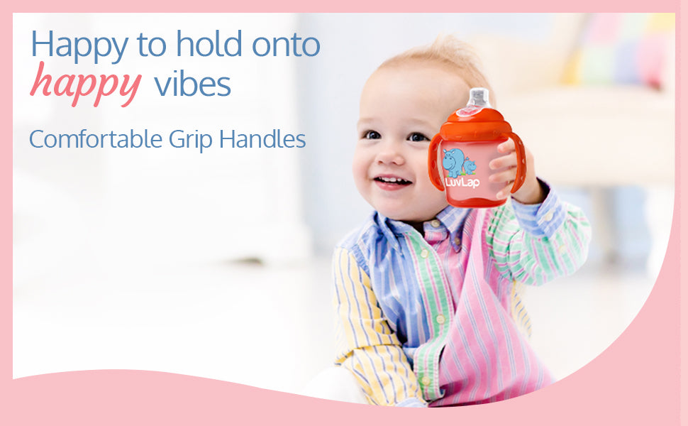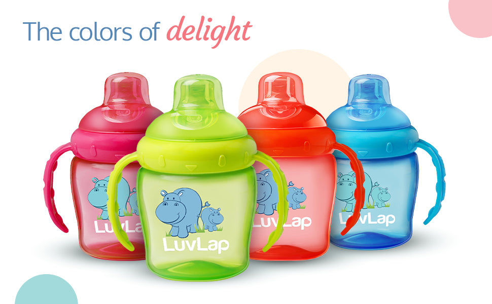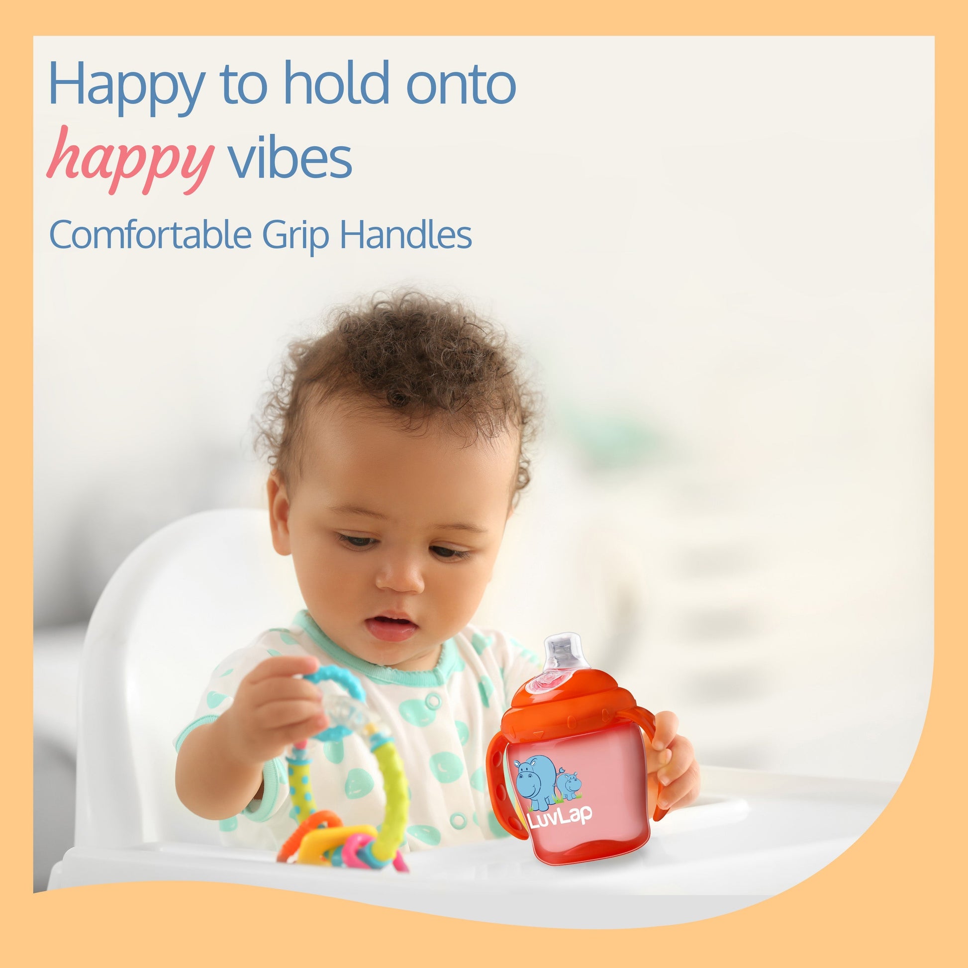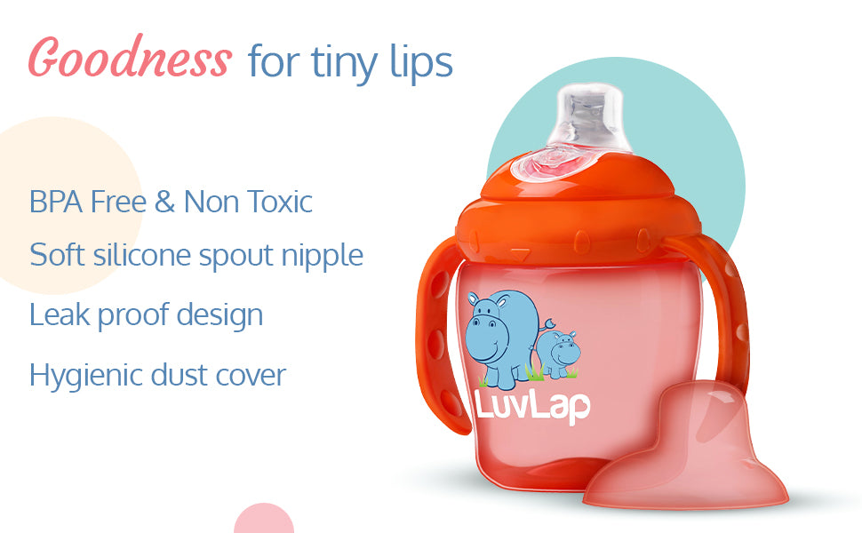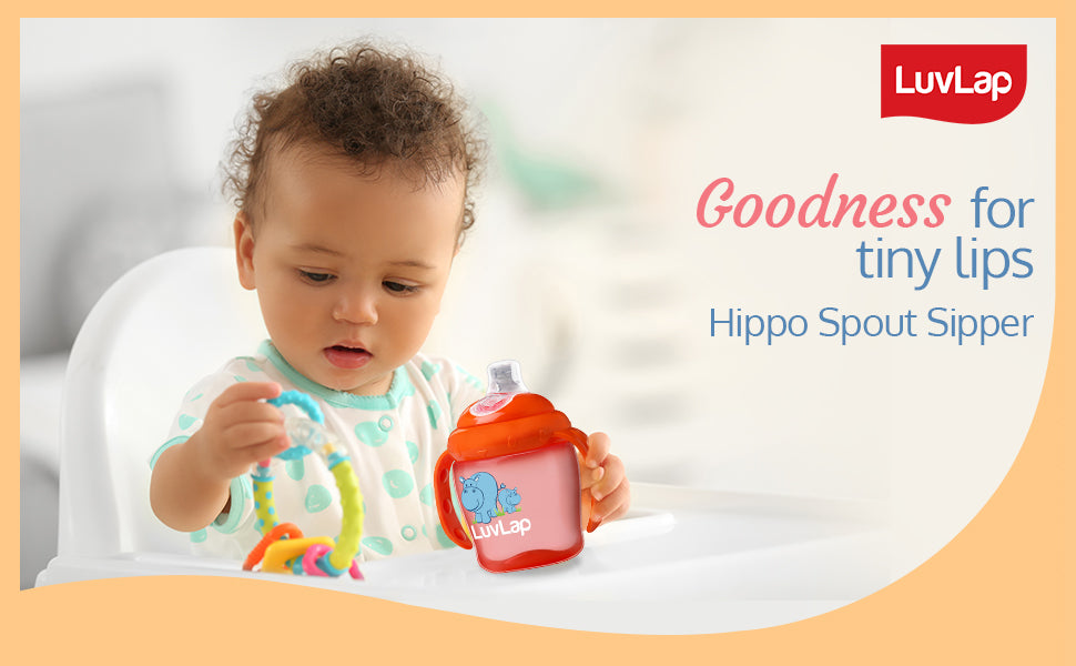 LuvLap Hippo Spout Sippers are gentle on baby's teeth Built in touch flow valve makes the sipper spill free and Enables baby led drinking. The Sipper is ergonomically designed for a better grip.