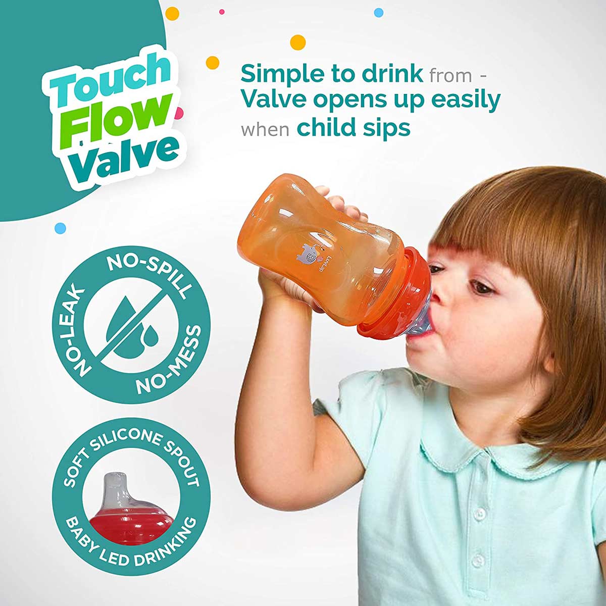 Attractive Sippers in various designs and colours. Made from non toxic BPA free plastic and soft silicone. Silicone spout is gentle on baby's teeth. Ergonomically designed, easy to hold and drink from.