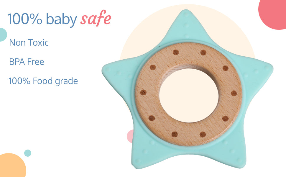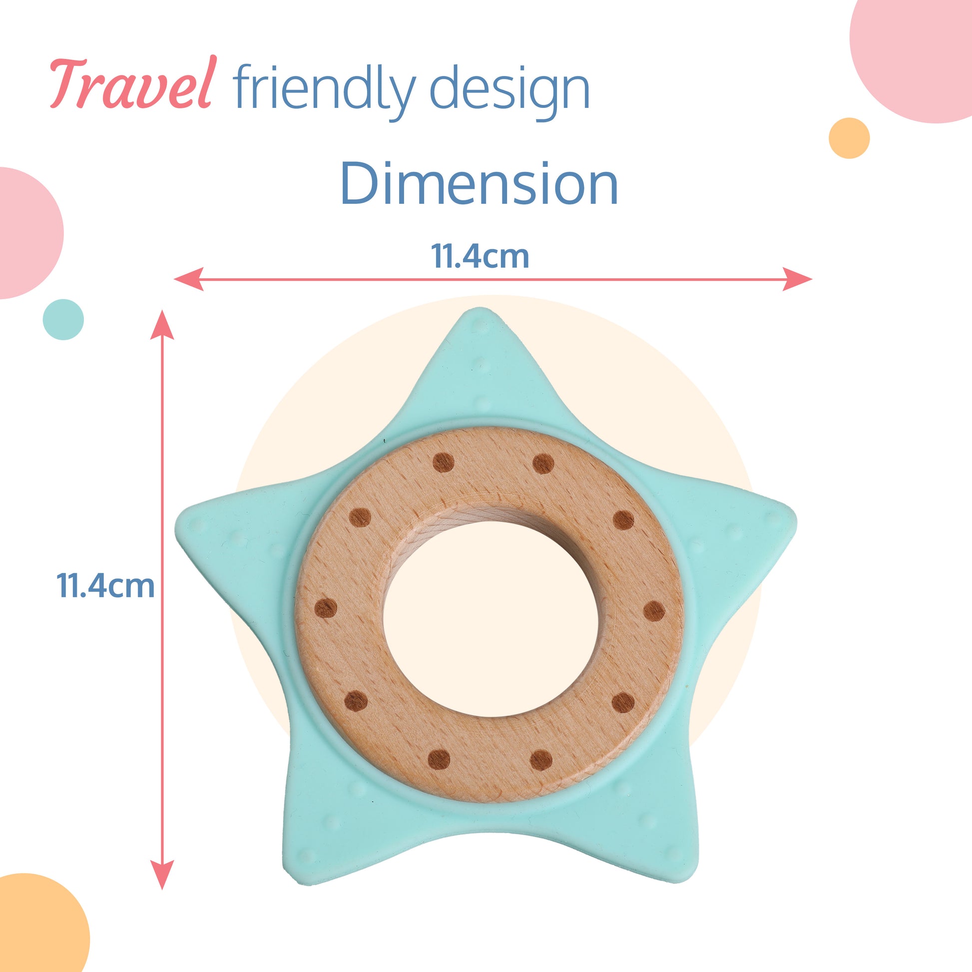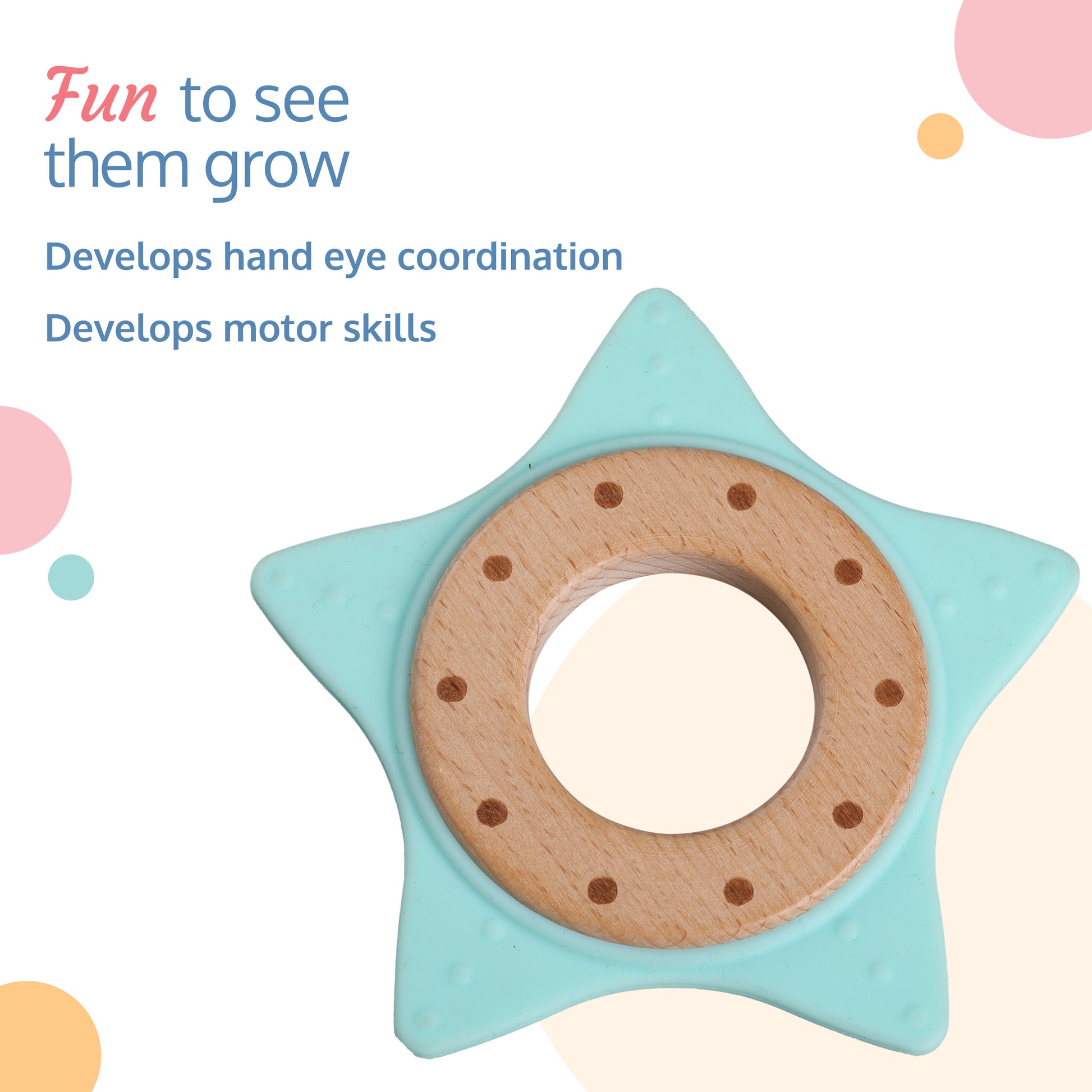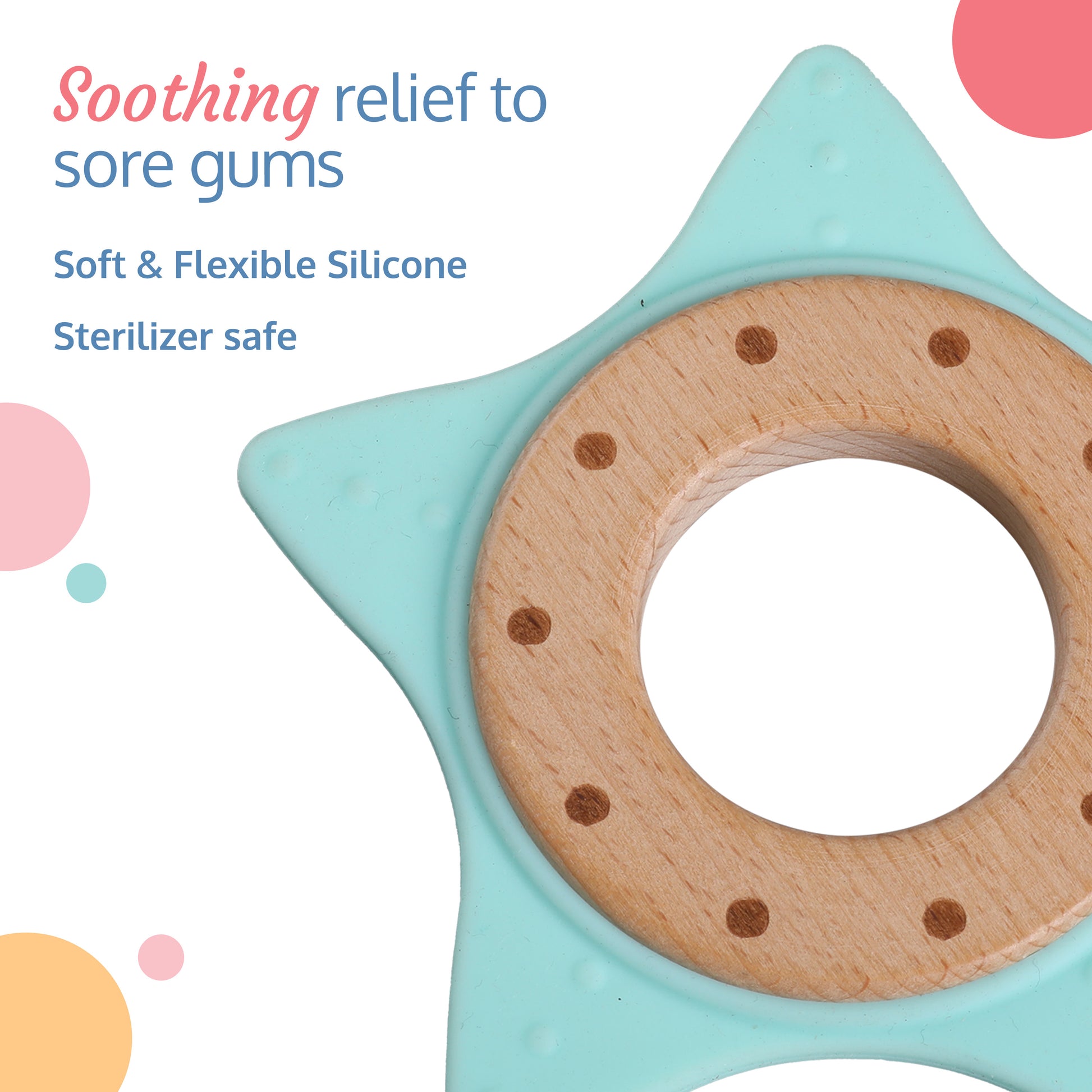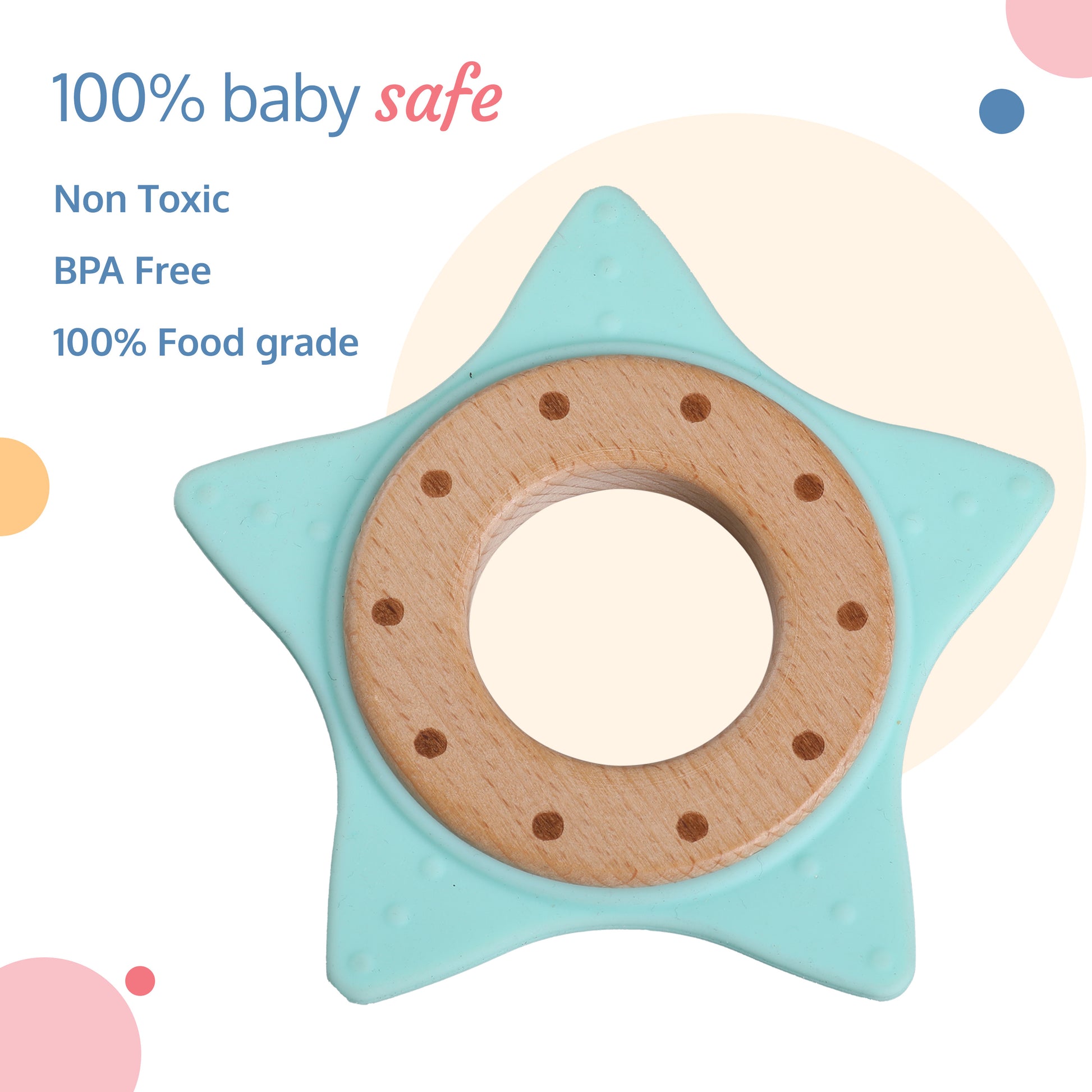 Baby Silicone Teether with Beech Wood Inner Ring, Light Green, Easy Grip, 3M+ Babies