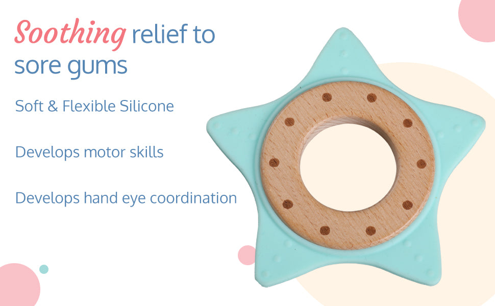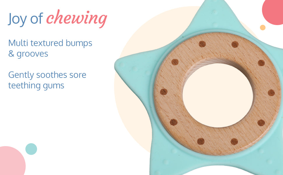 Babies grab and chew on things to reduce their teething pain. LuvLap Teething toys have textured surface suitable for baby gums to help soothe teething pain & helps new teeth to sprout.