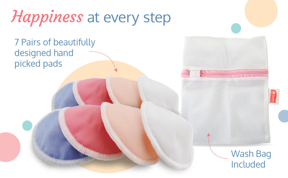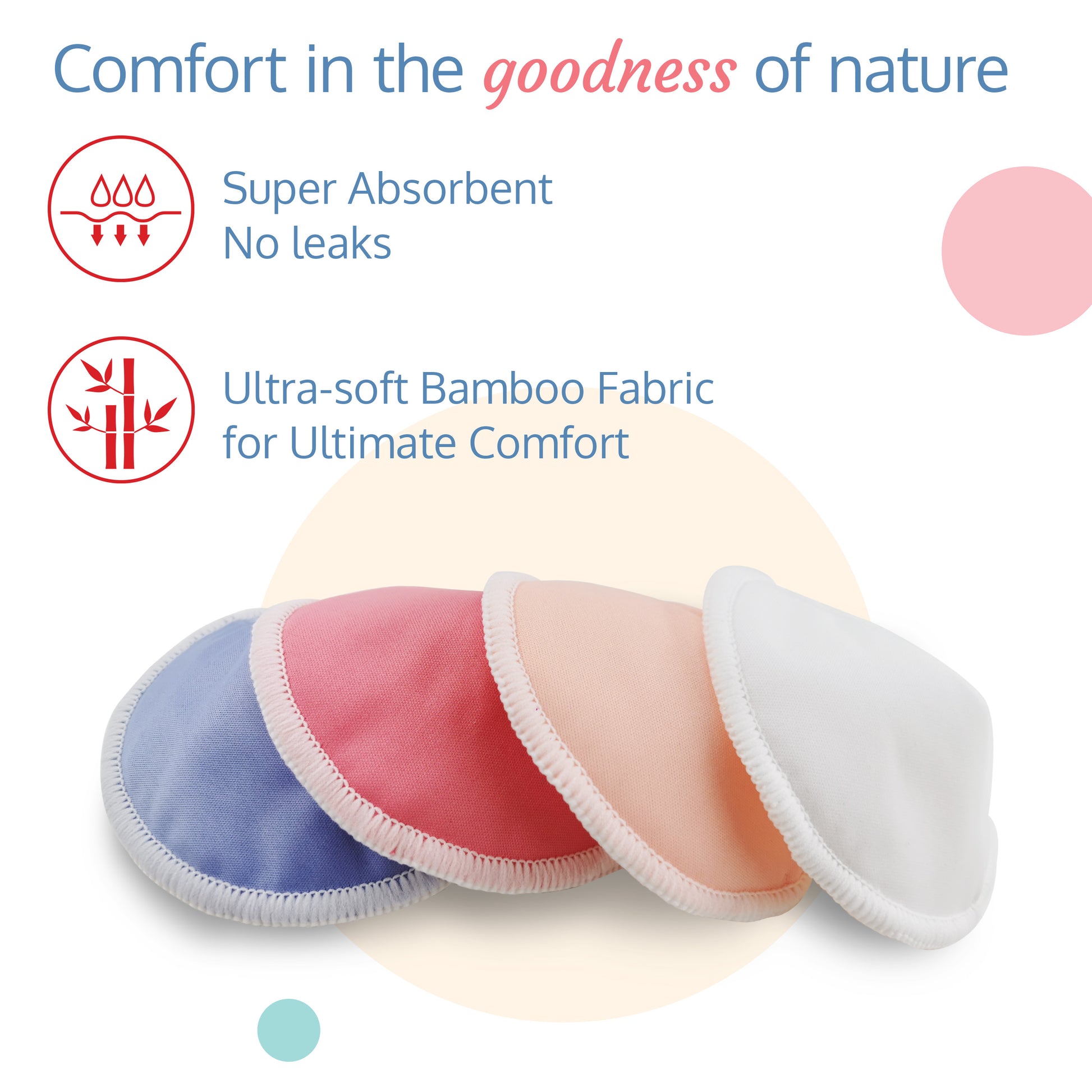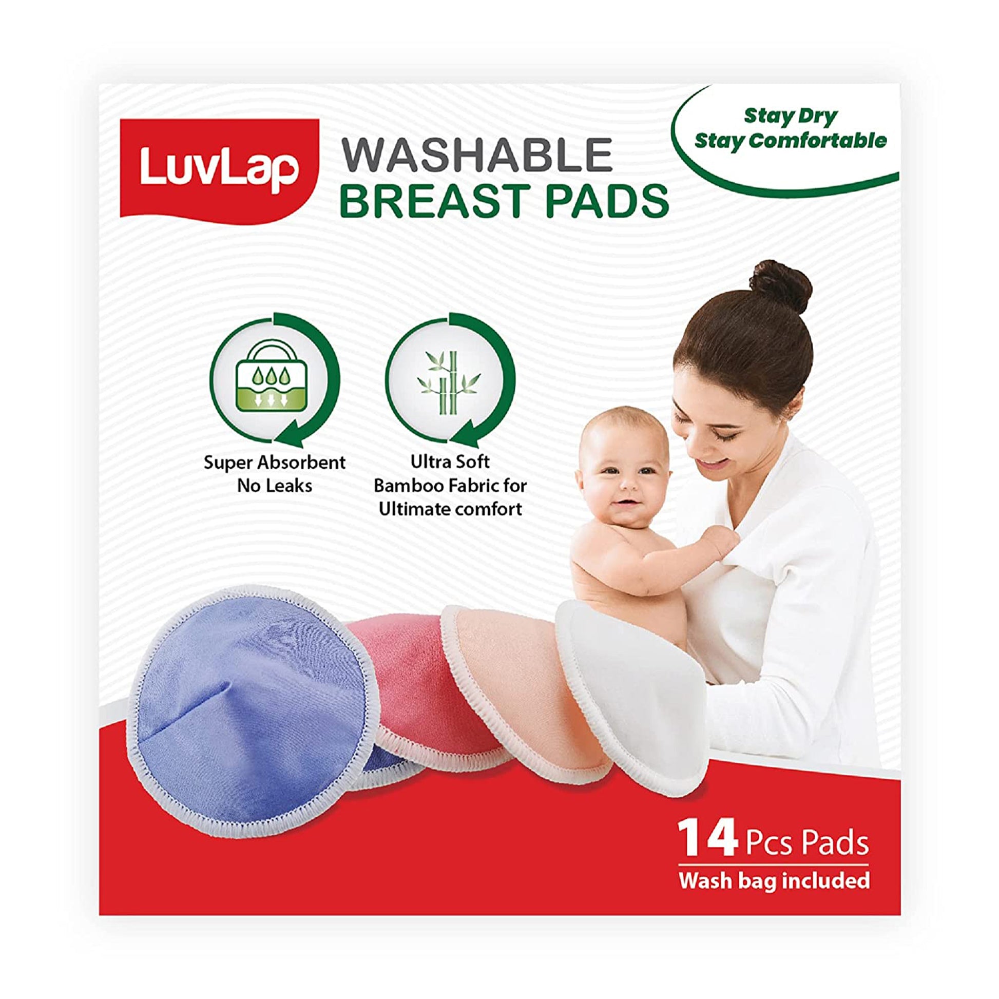 LuvLap Natural Bamboo Washable Nursing Breast Pads for Breast Feeding Mothers, Beautiful Pastel Shades, Contoured Shape for snug fit, Nipple Pad, Includes Laundry Bag, Super Absorption, 14Pcs